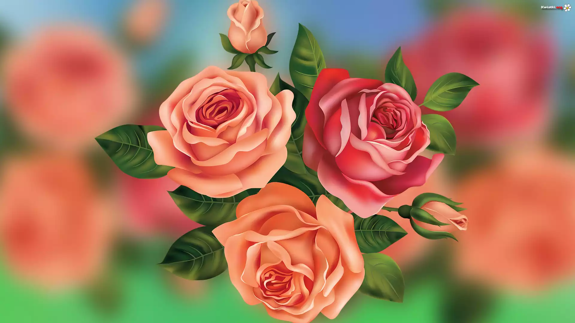 Kwiaty, Trzy, Róże, Grafika, 2D - Zdjęcia