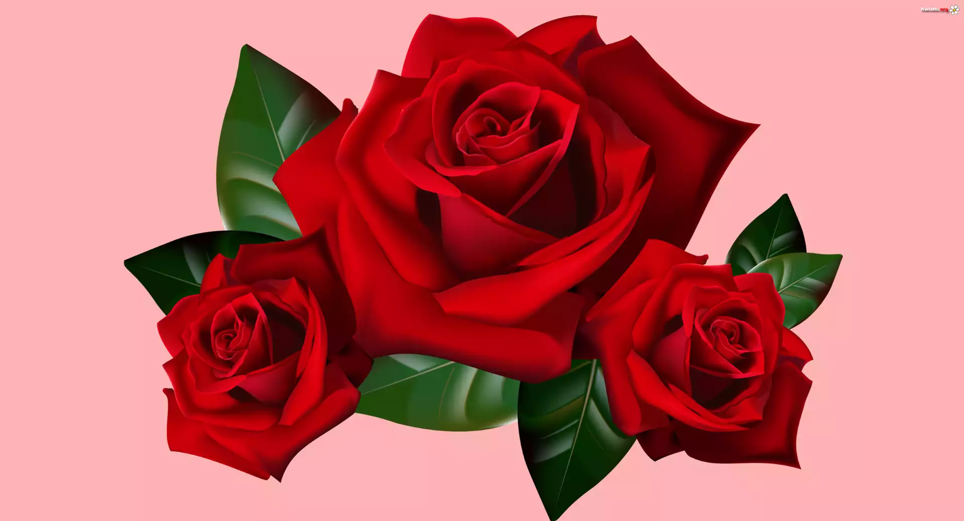 Trzy, Czerwone, Róże, 2D - Zdjęcia