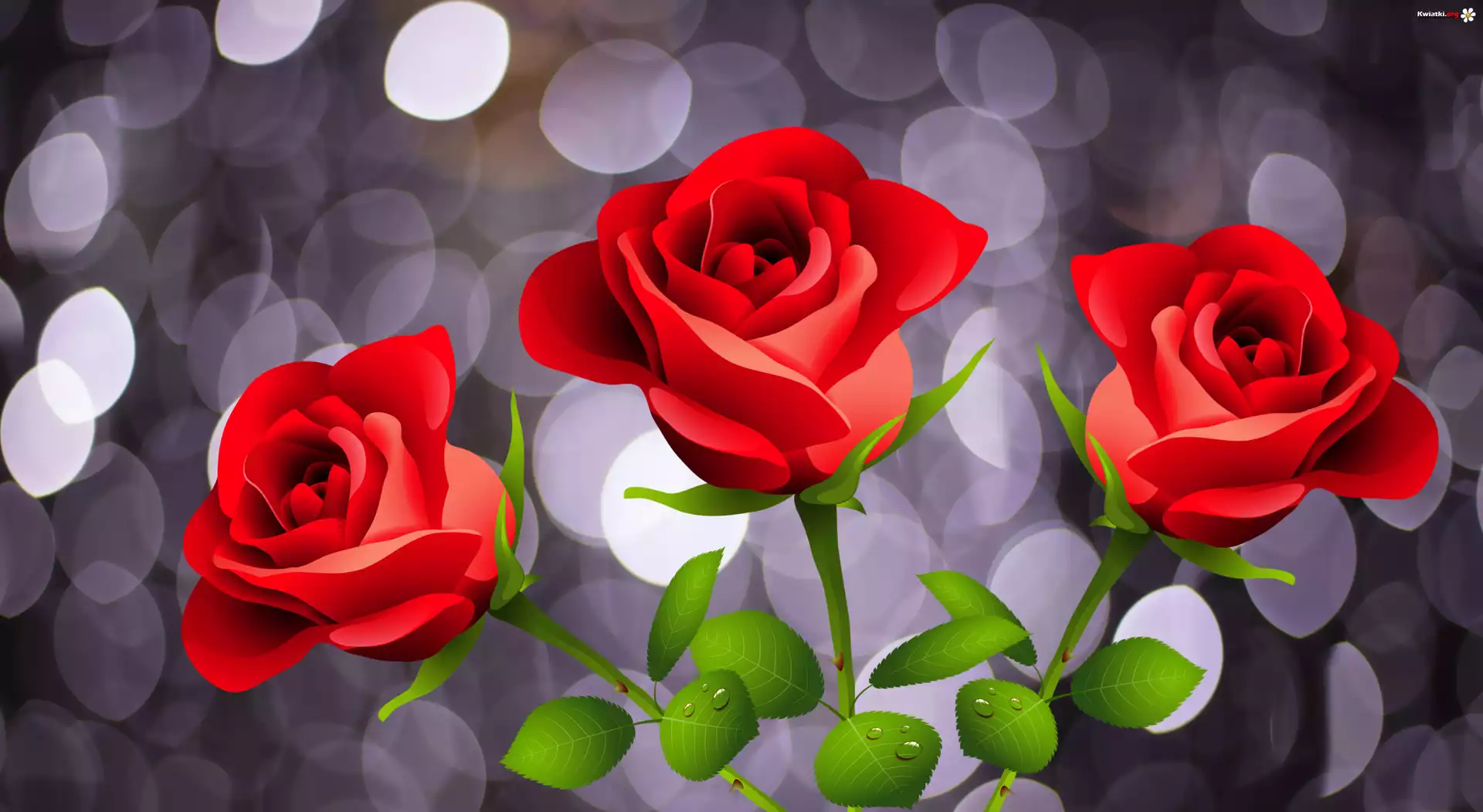 Kwiat Trzy, Czerwone, Róże, Bokeh