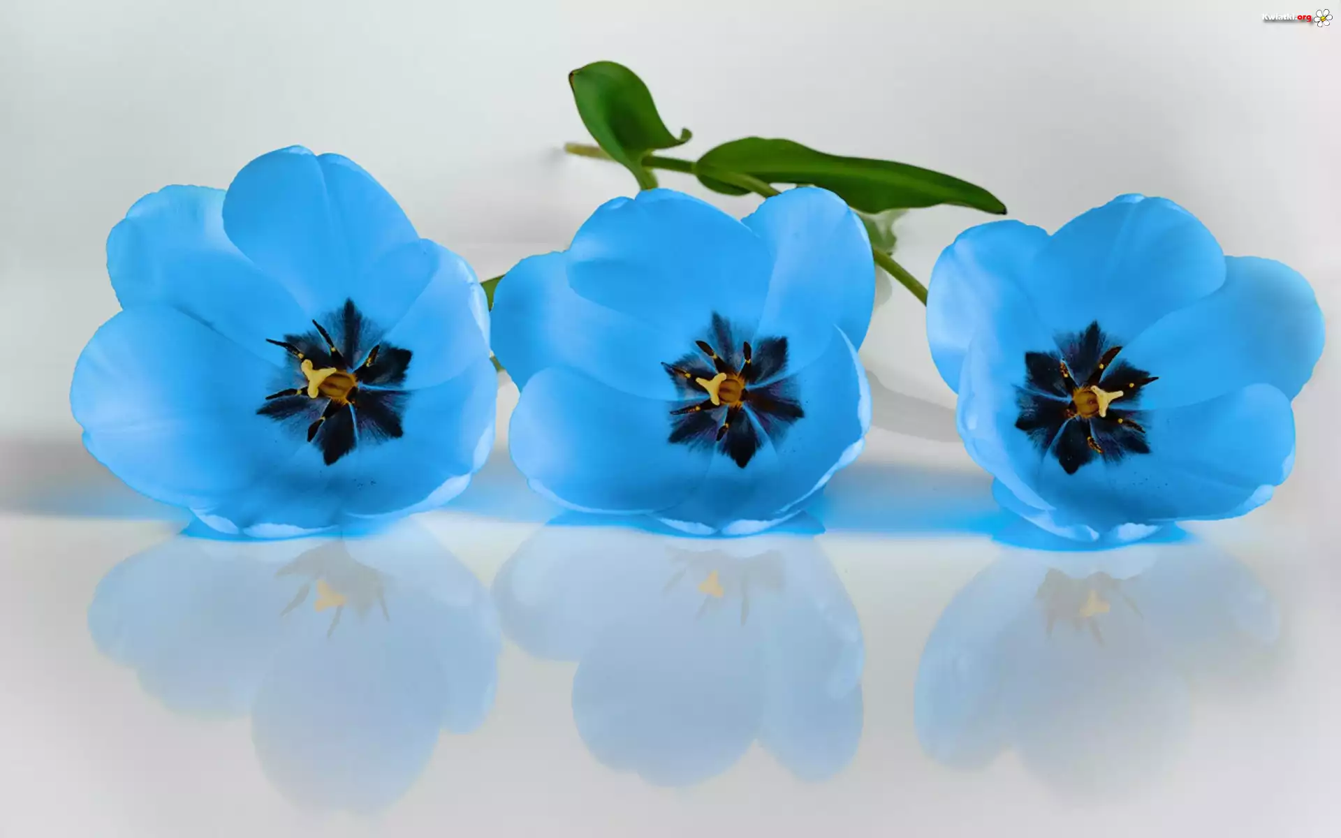 Kwiat Trzy, Niebieskie, Tulipany, Odbicie