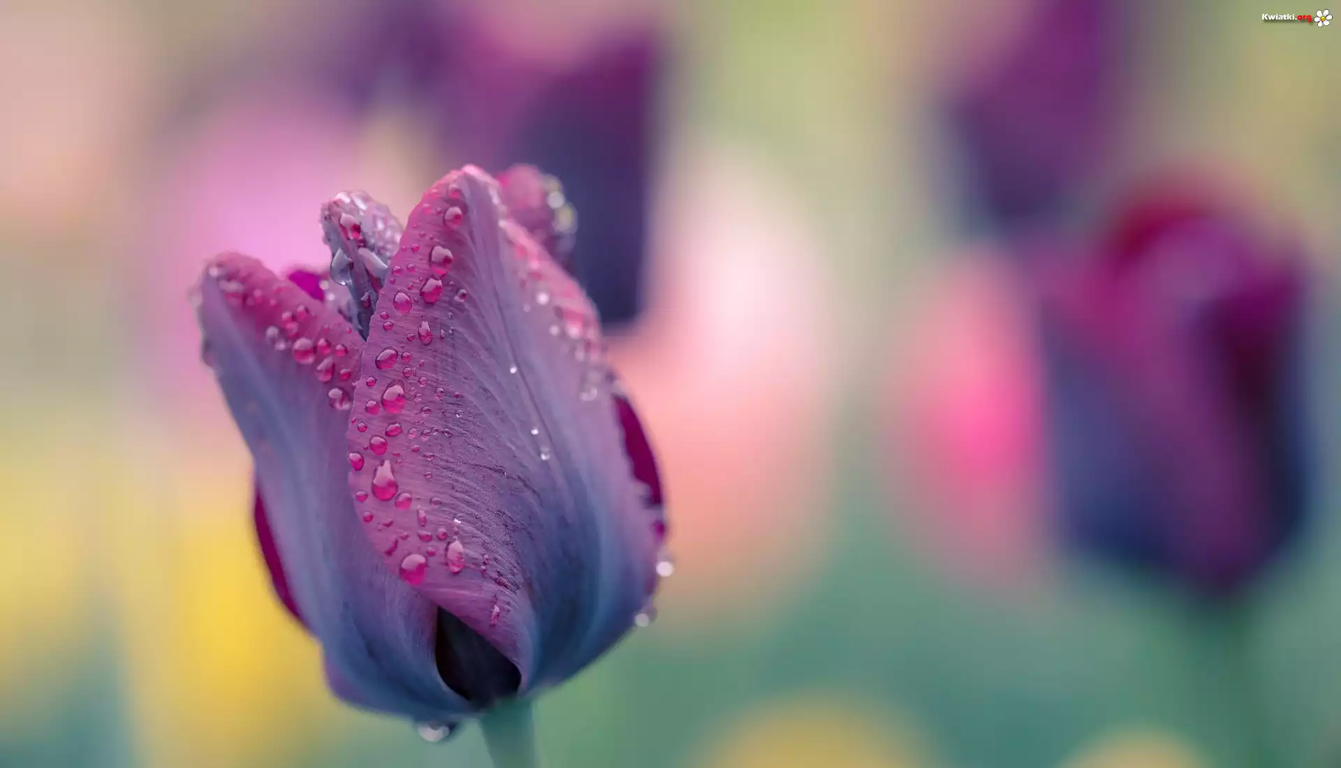 Kwiat Fioletowy, Tulipan, Krople
