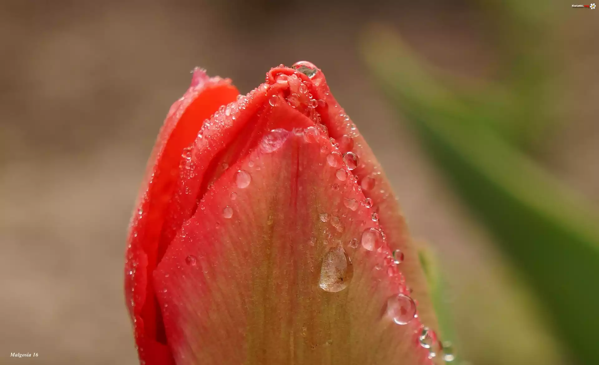Kwiat Tulipan, Pąk, Krople, Rosa, Makro