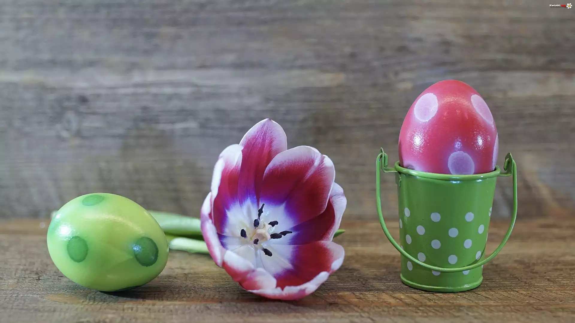 Kwiat Wielkanoc, Tulipan, Rozwinięty, Ozdobne, Wiaderko, Kolorowe, Pisanki