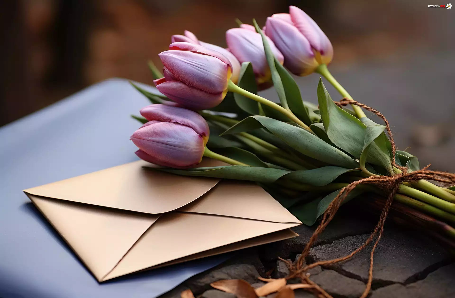 Fioletowe, Tulipany, Bukiet, Sznurki, Koperty - Zdjęcia