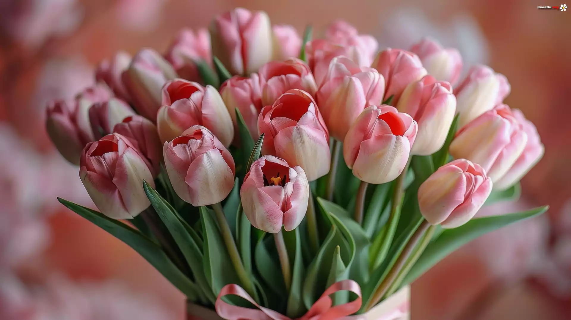 Kwiat Bukiet, Biało-różowe, Tulipany