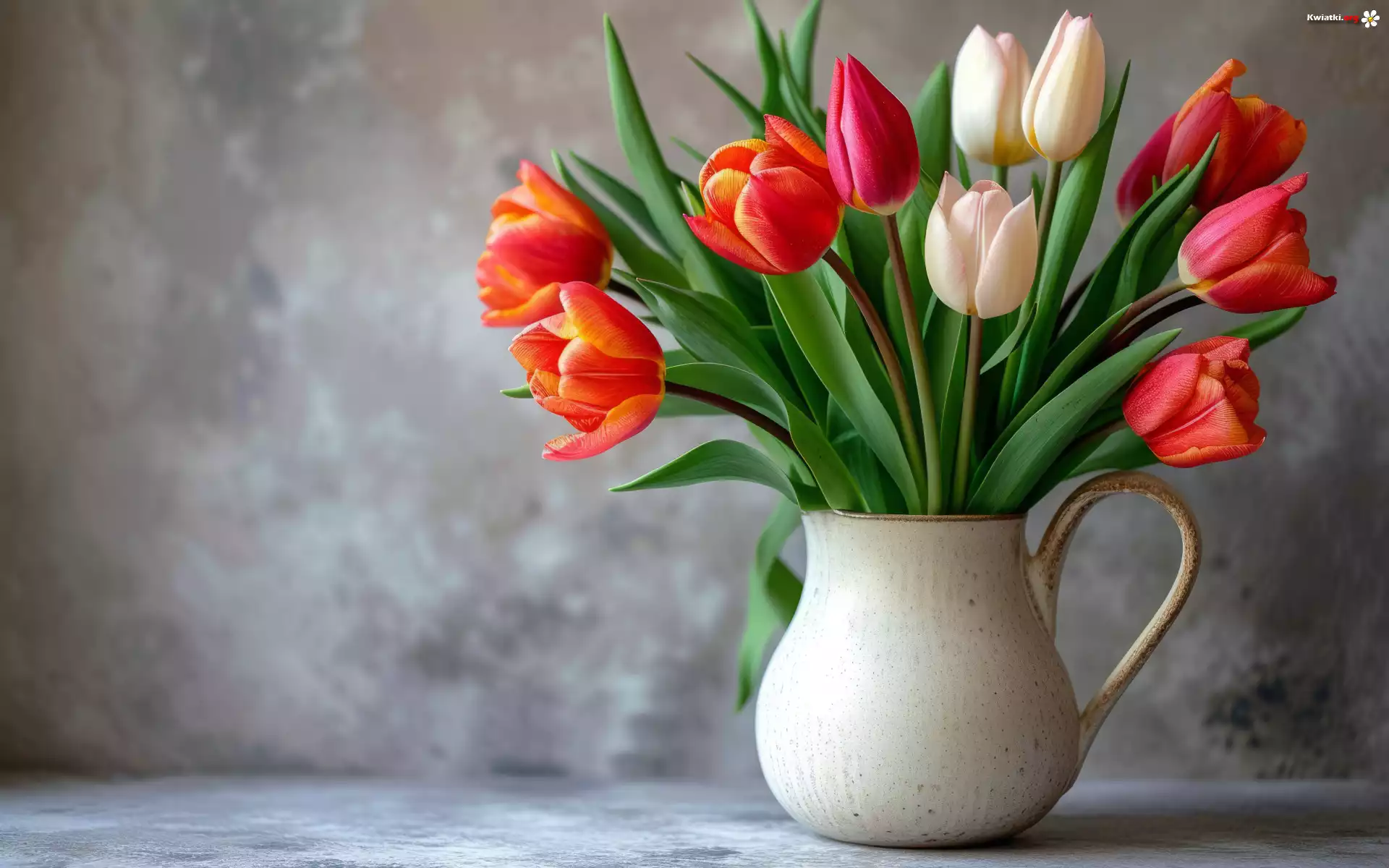 Kwiat Kwiaty, Tulipany, Bukiet, Dzbanek, Tło