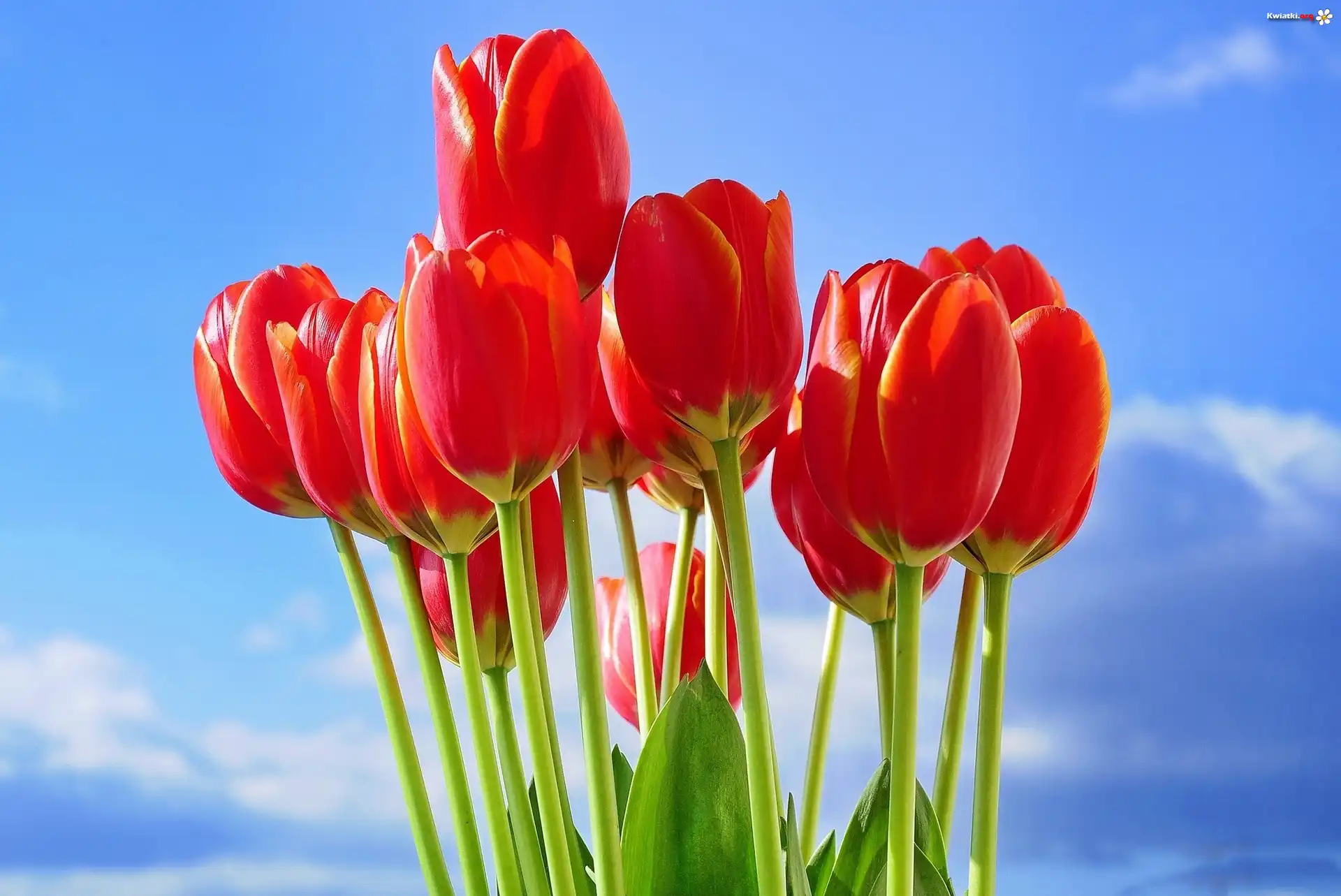 Czerwone, Tulipany, Niebo - Zdjęcia