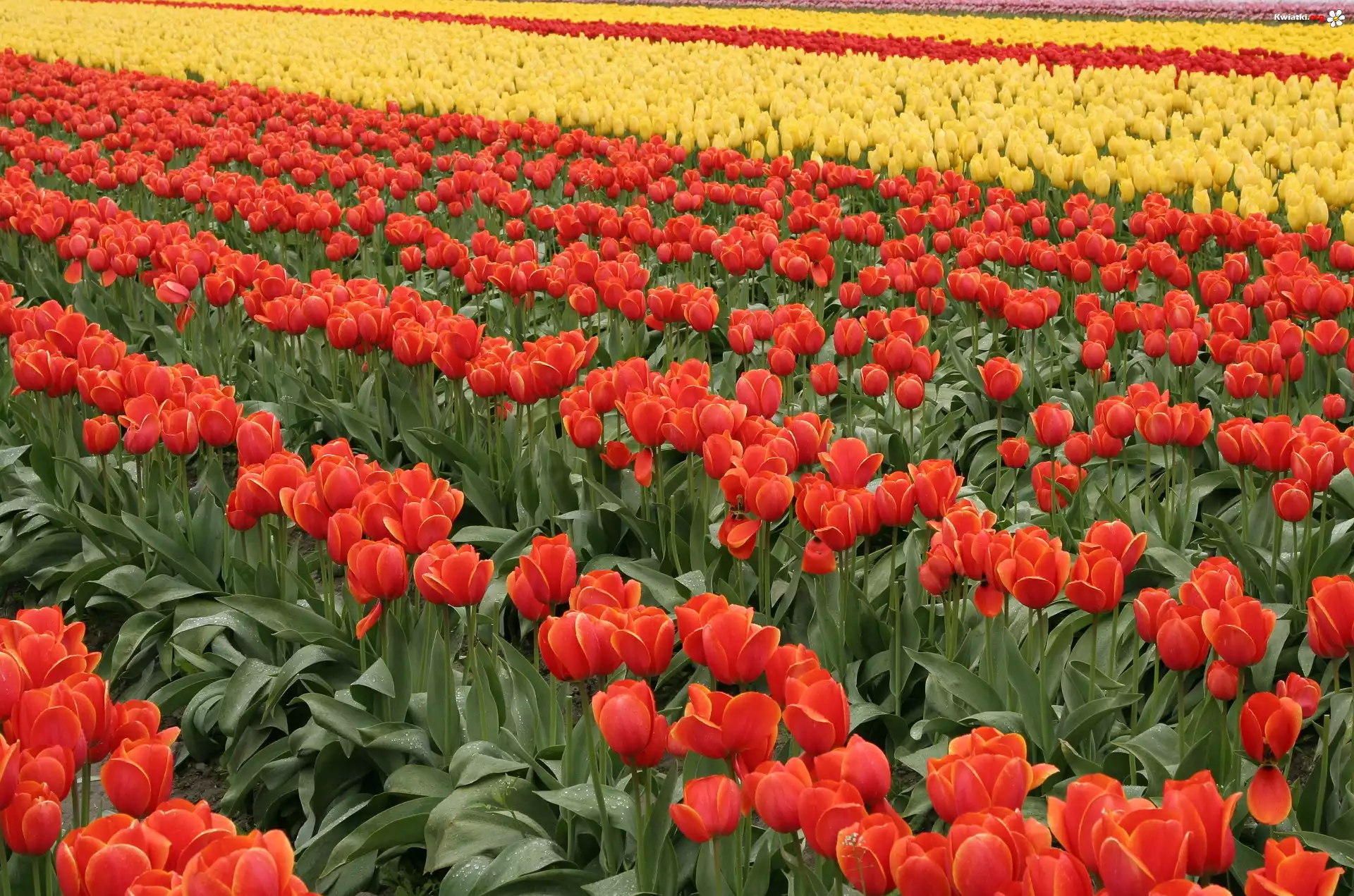 Kwiaty, Tulipany, Czerwone, Żółte, Plantacja - Zdjęcia