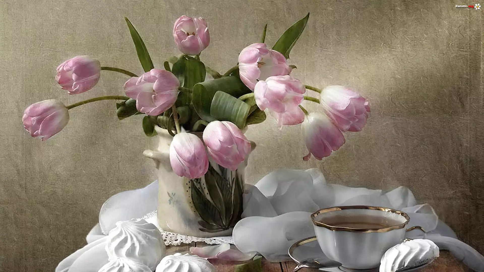 Kwiat Tulipany, Flakon, Filiżanka, Bezy