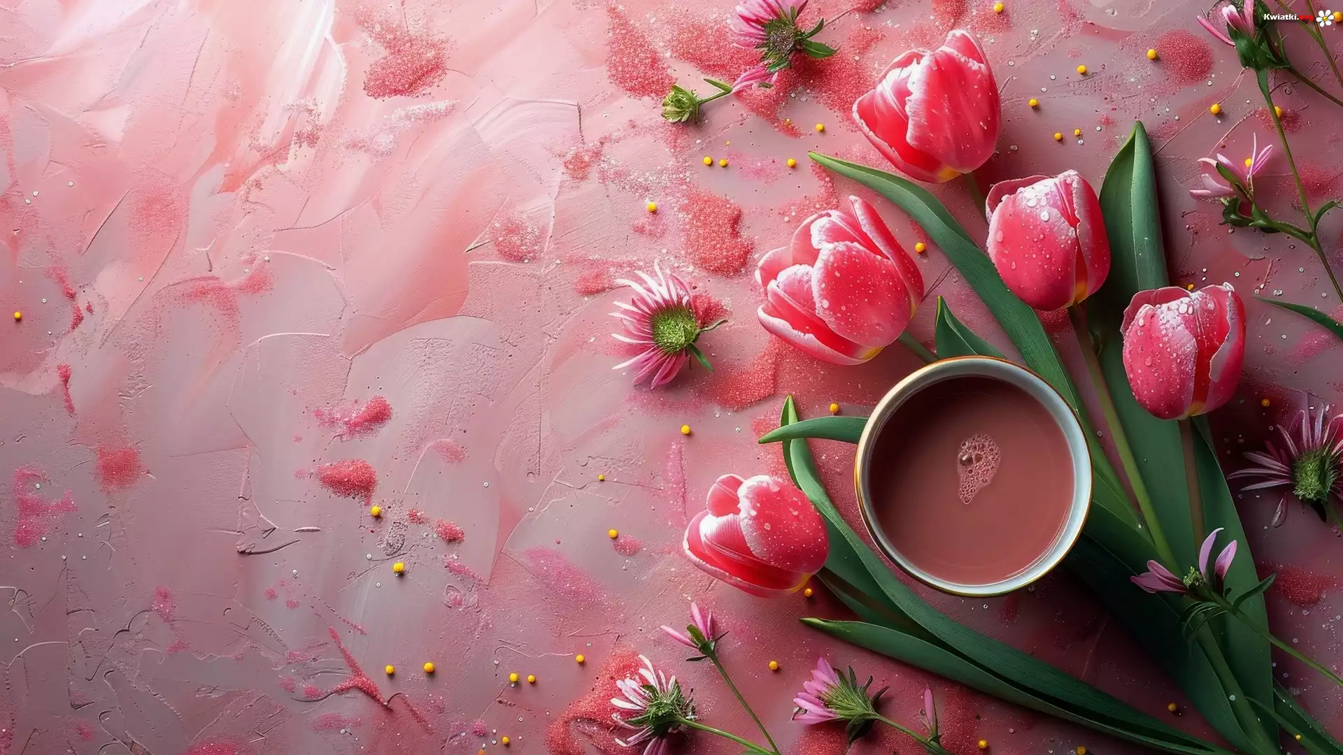 Czerwone, Tulipany, Filiżanka, Różowe, Tło - Zdjęcia