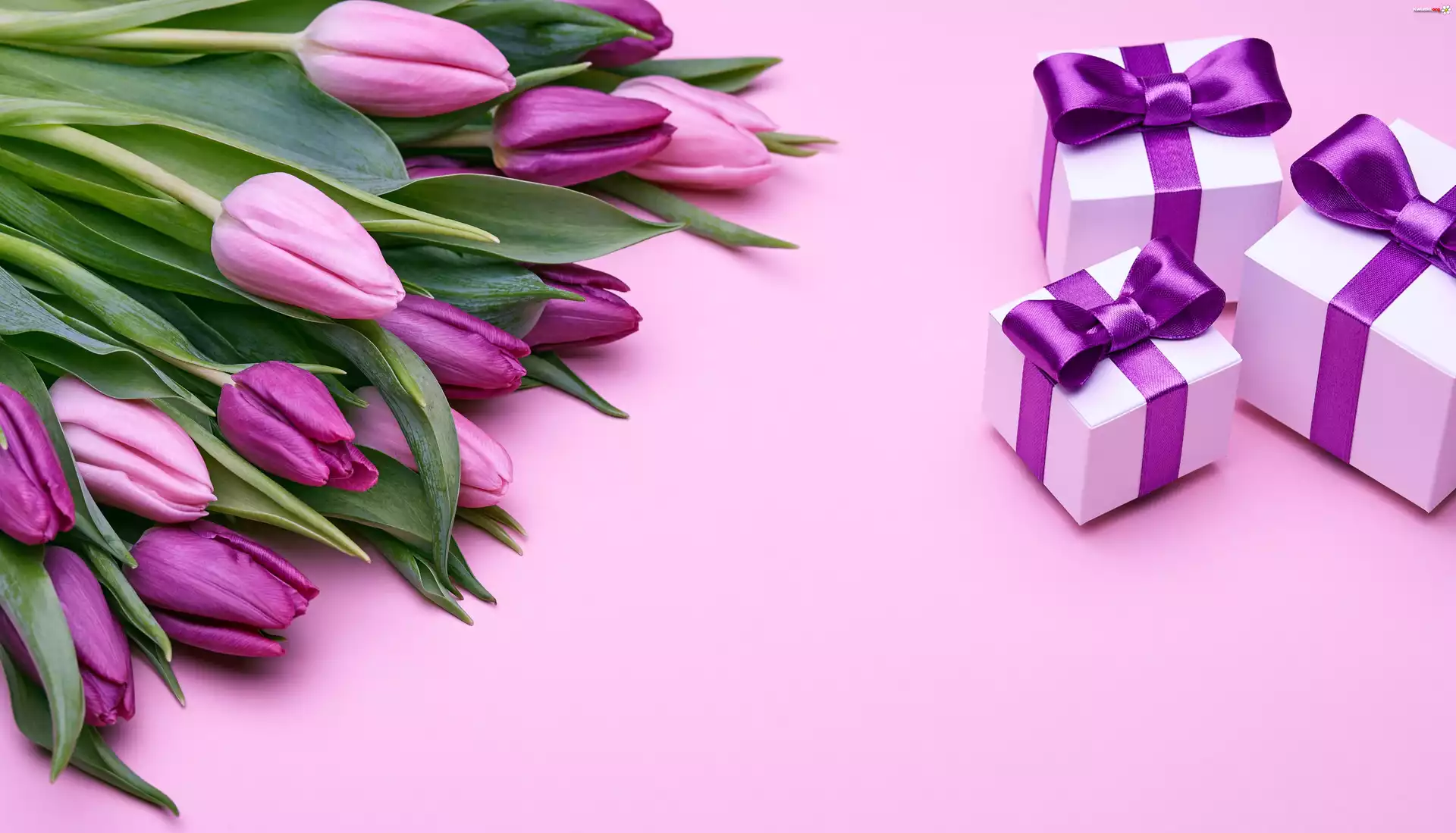 Fioletowe, Tulipany, Prezenty - Zdjęcia