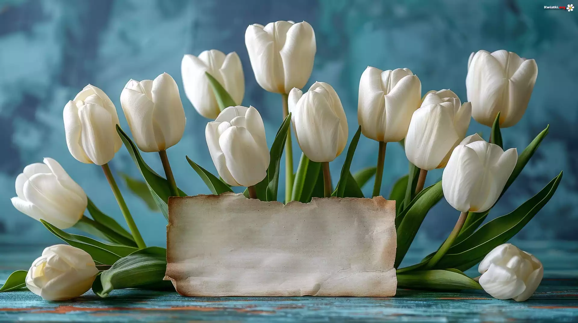 Białe, Tulipany, Kartka, Niebieskie, Tło - Zdjęcia