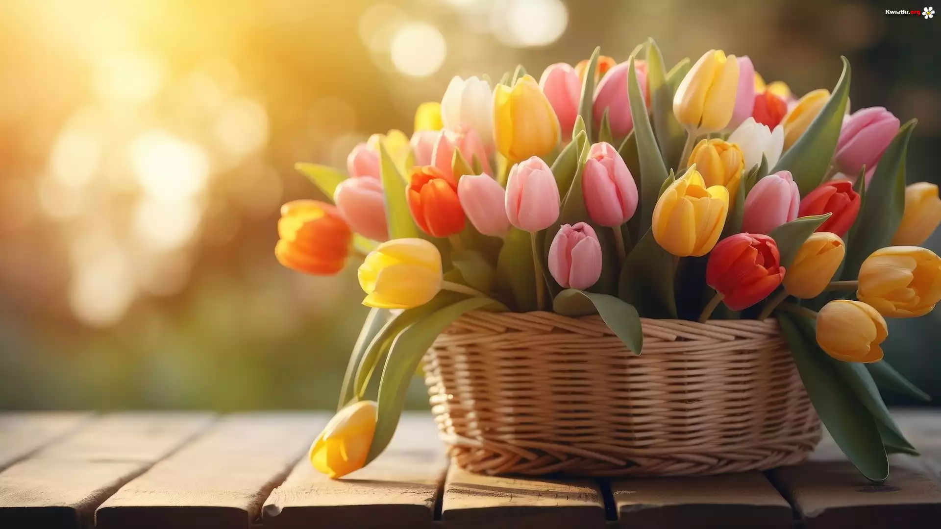 Kwiaty, Tulipany, Kolorowe, Koszyk, Deski - Zdjęcia
