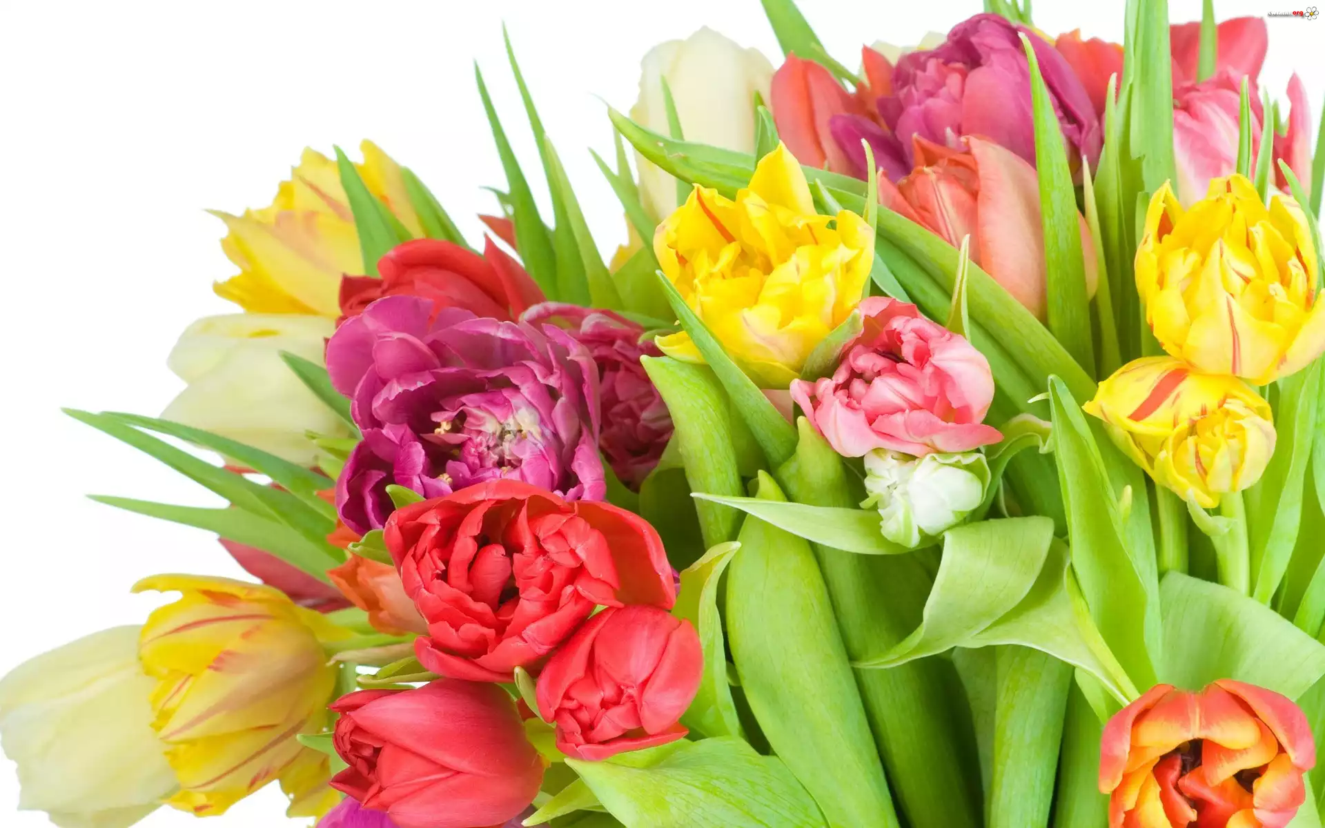 Kolorowe, Tulipany, Liście - Zdjęcia