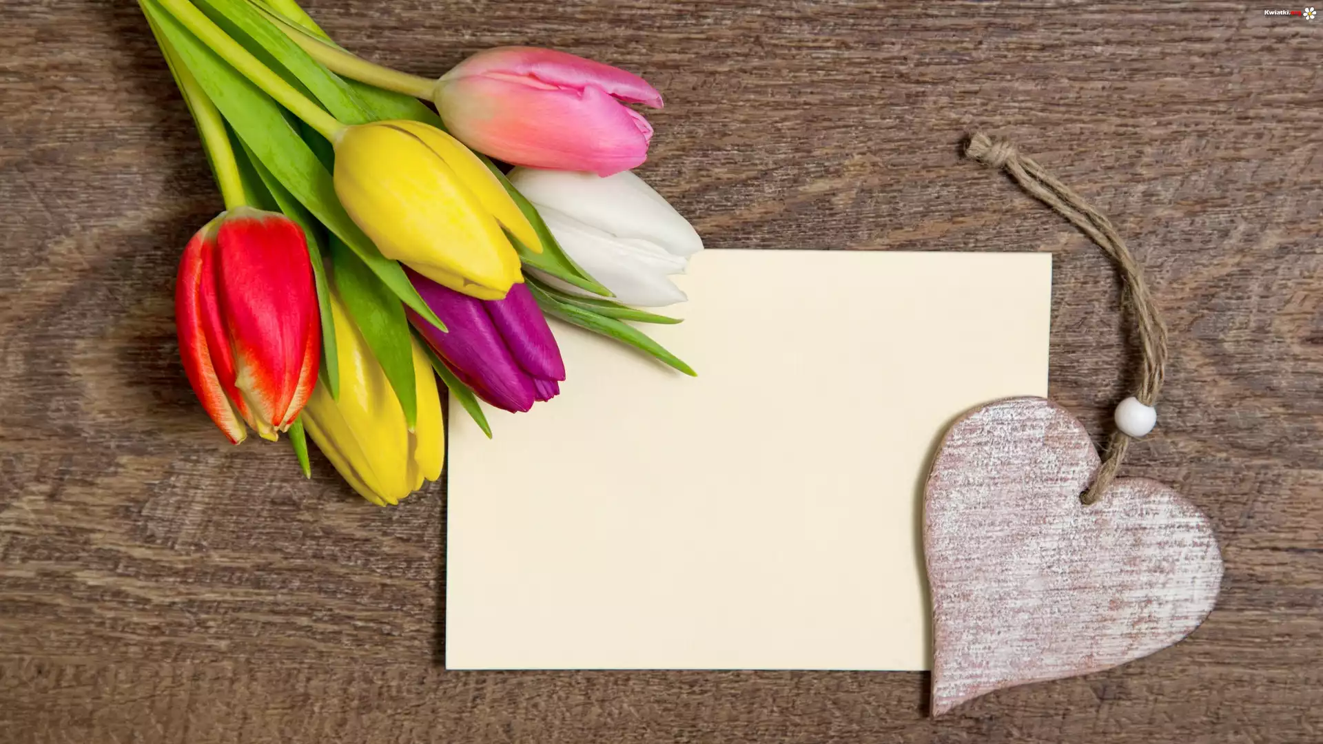 Kwiat Kolorowe, Tulipany, Bukiet, Kartka, Zawieszka, Drewniane, Serce