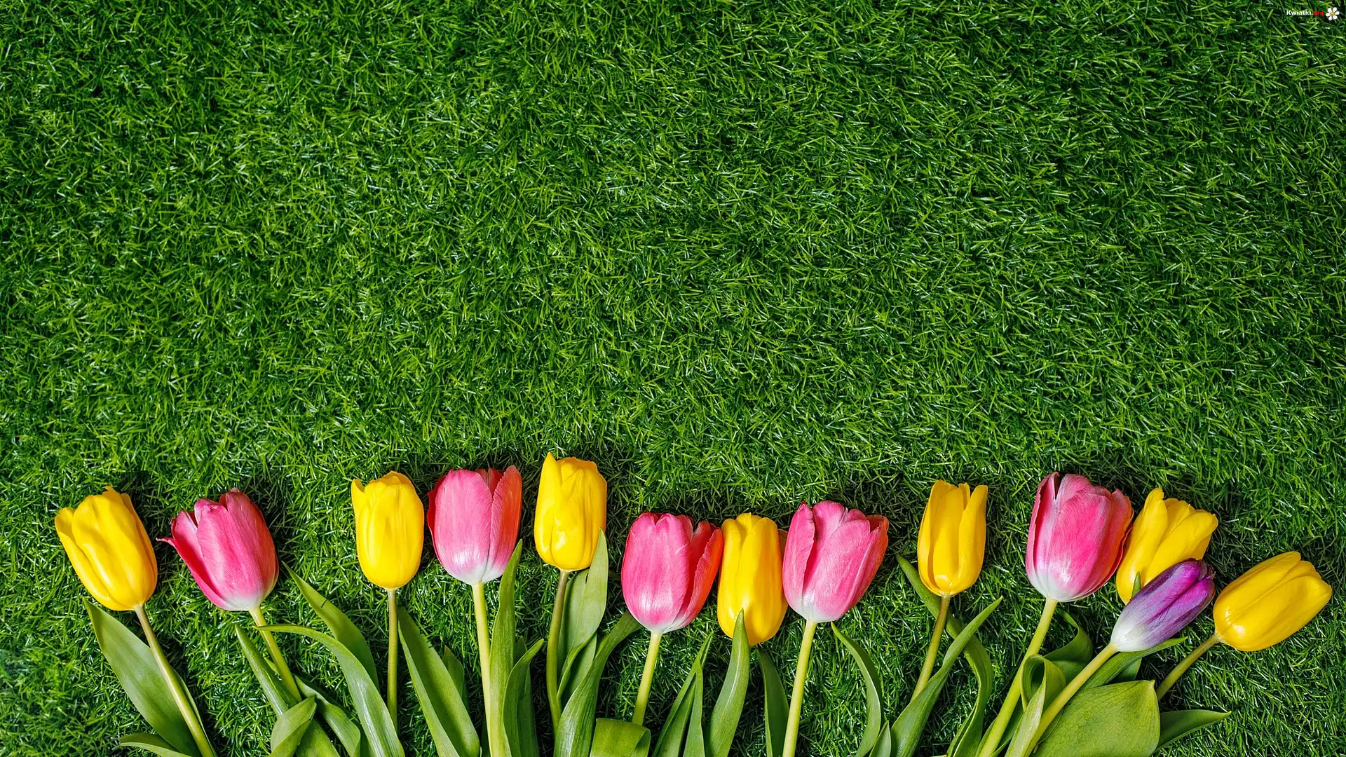 Kolorowe, Tulipany, Trawa - Zdjęcia