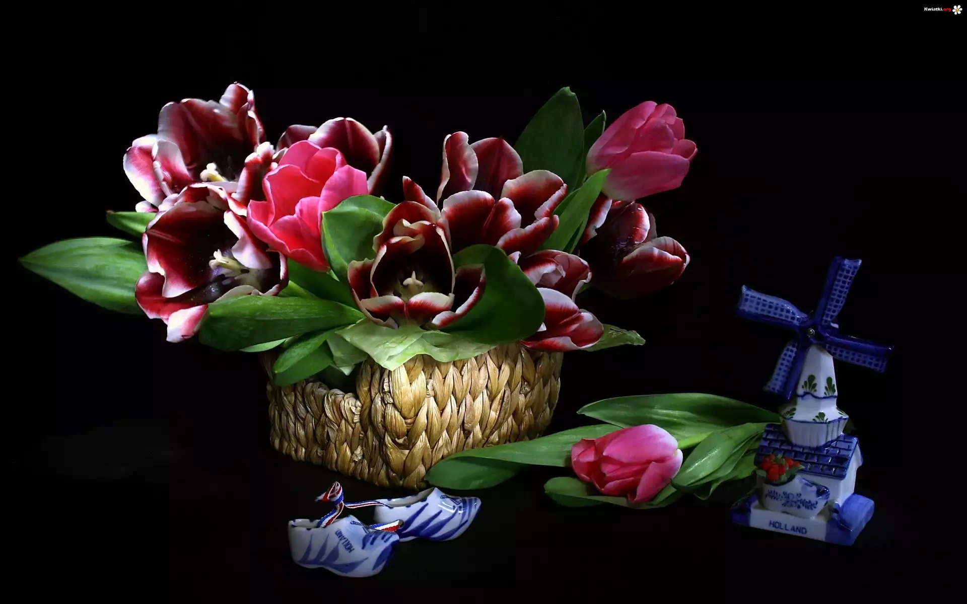 Kosz, Tulipany, Porcelana - Zdjęcia