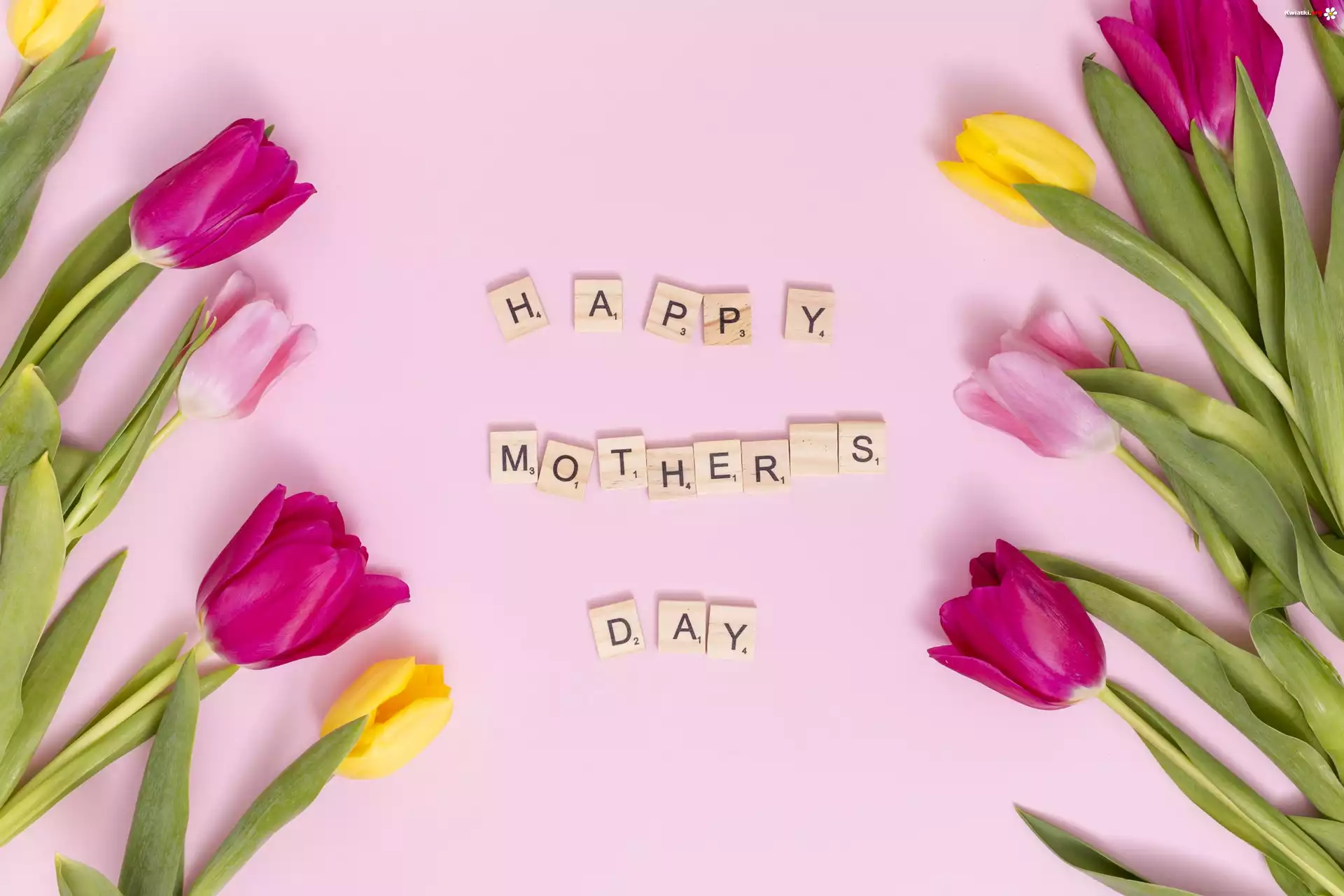 Wiosna, Dzień Matki, Napis, Happy Monters Day, Kwiaty, Tulipany - Zdjęcia