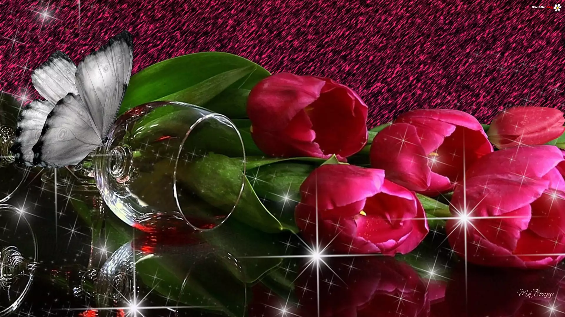 Tulipany, Kieliszek, Motyl, Art - Zdjęcia