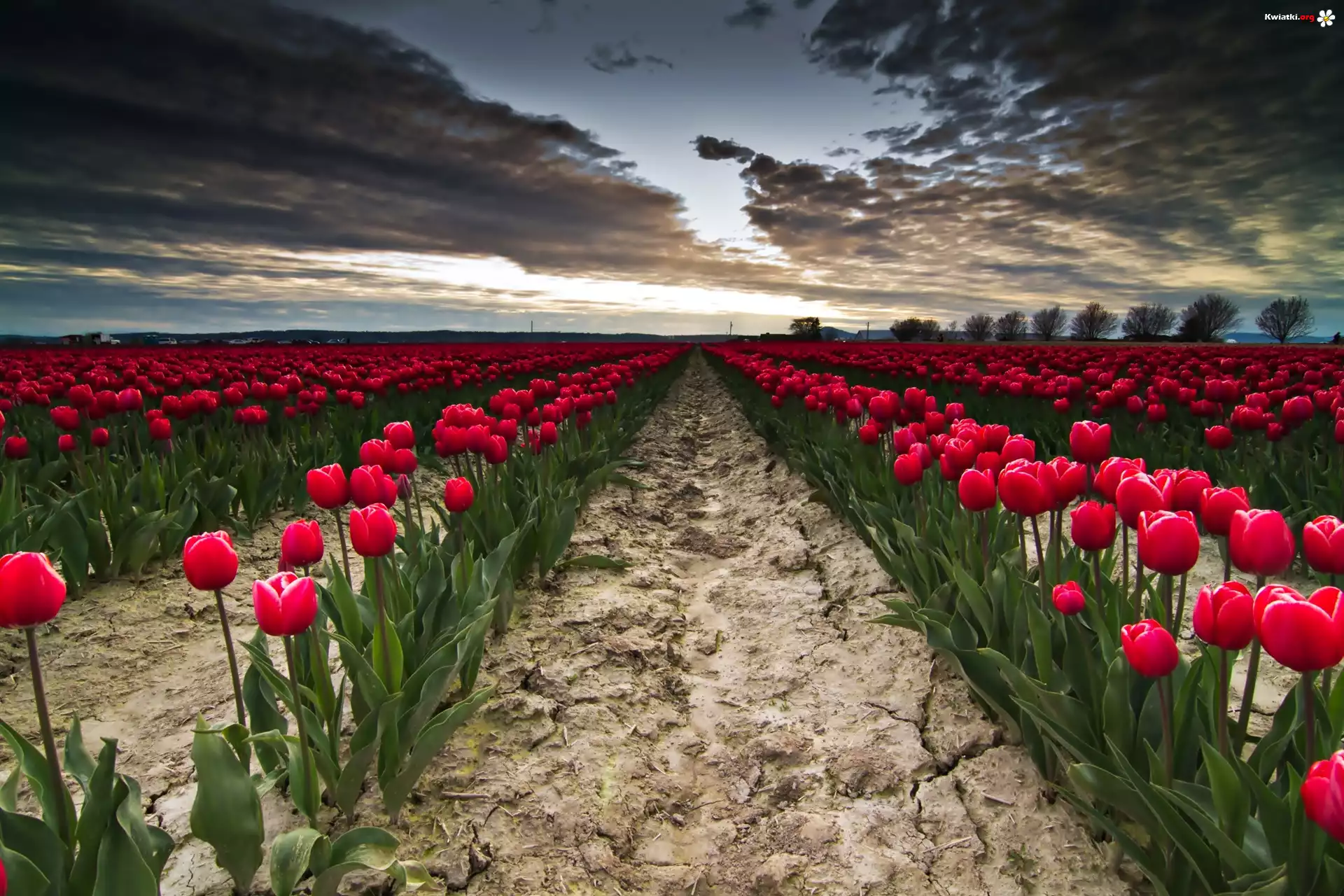 Tulipany, Pole, Niebo, Chmury - Zdjęcia