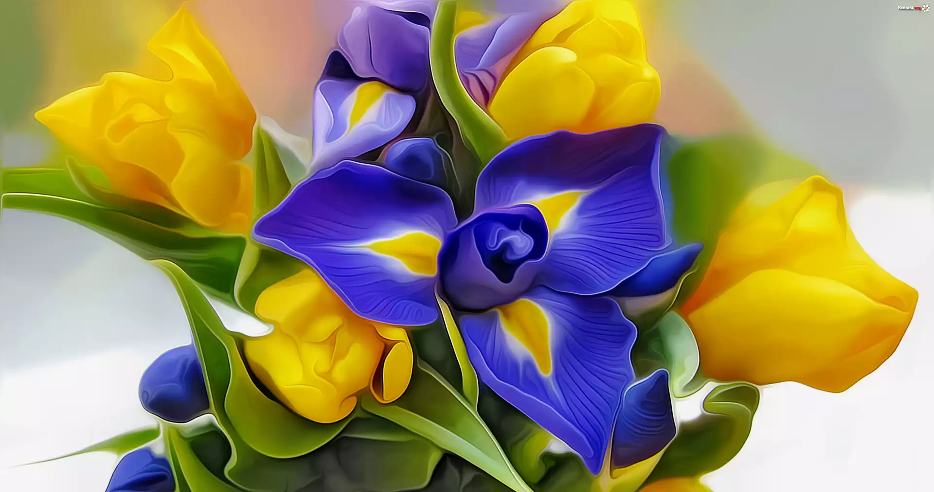 Kwiat Żółte, Tulipany, Art