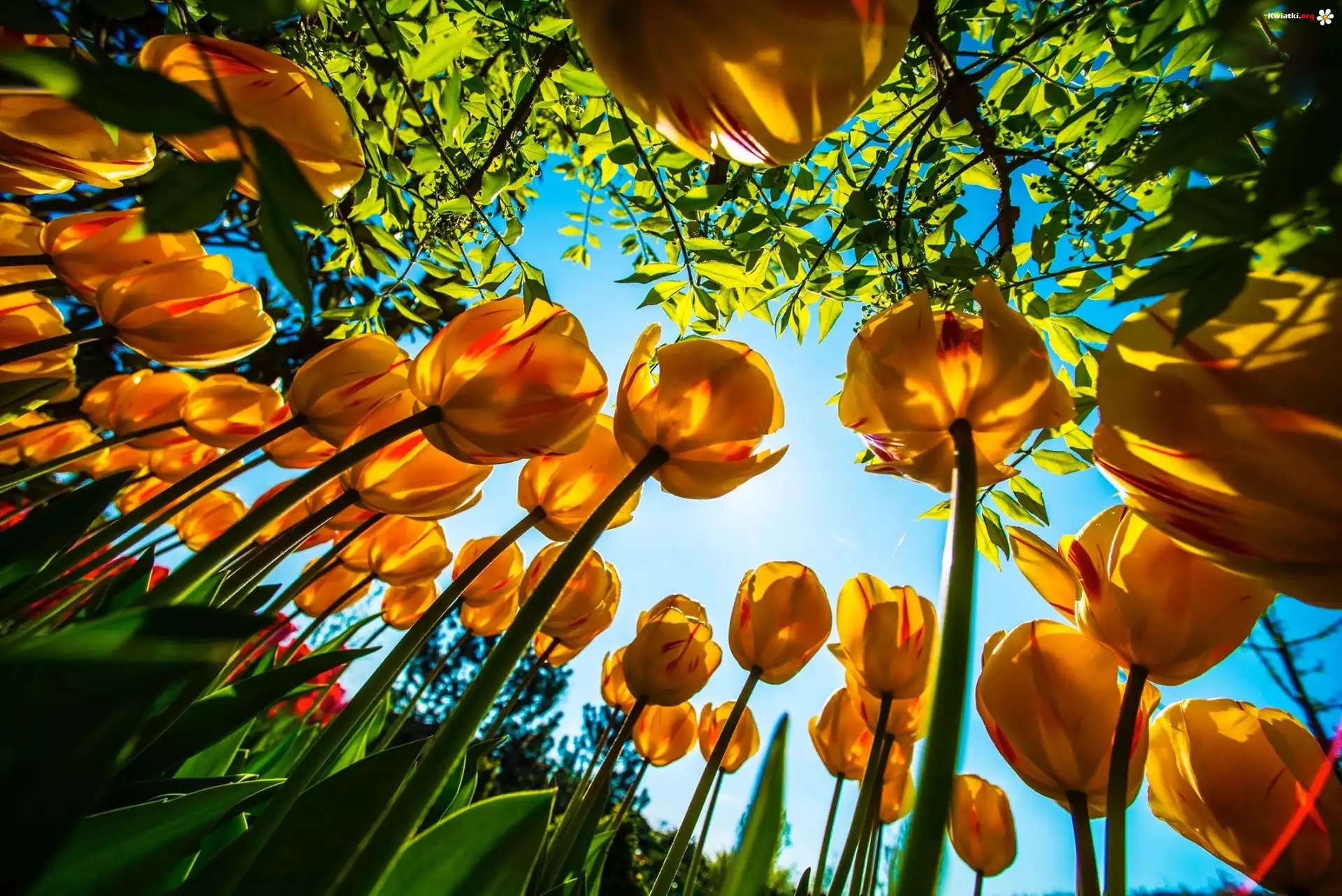 Kwiat Żółte, Tulipany, Niebo