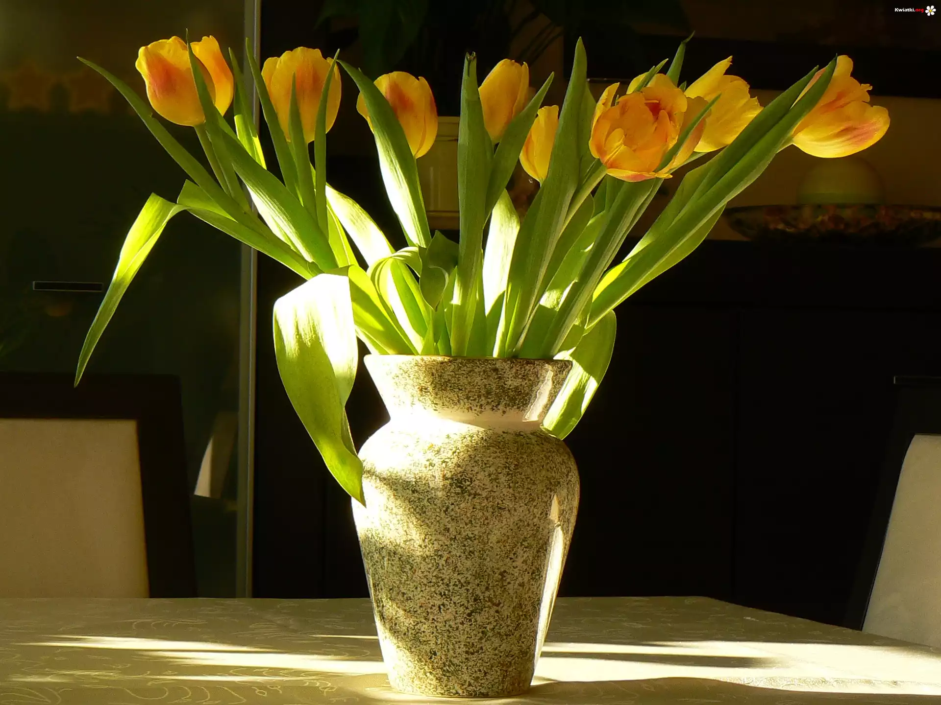 Kwiat Żółte, Tulipany, Wazon