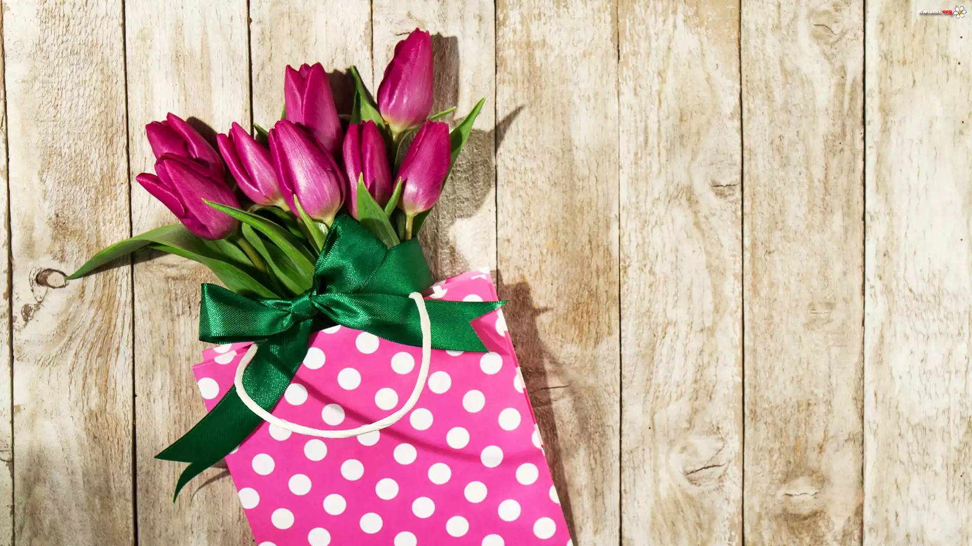 Tulipany, Zielona, Wstążka, Ozdobna, Torebka - Zdjęcia