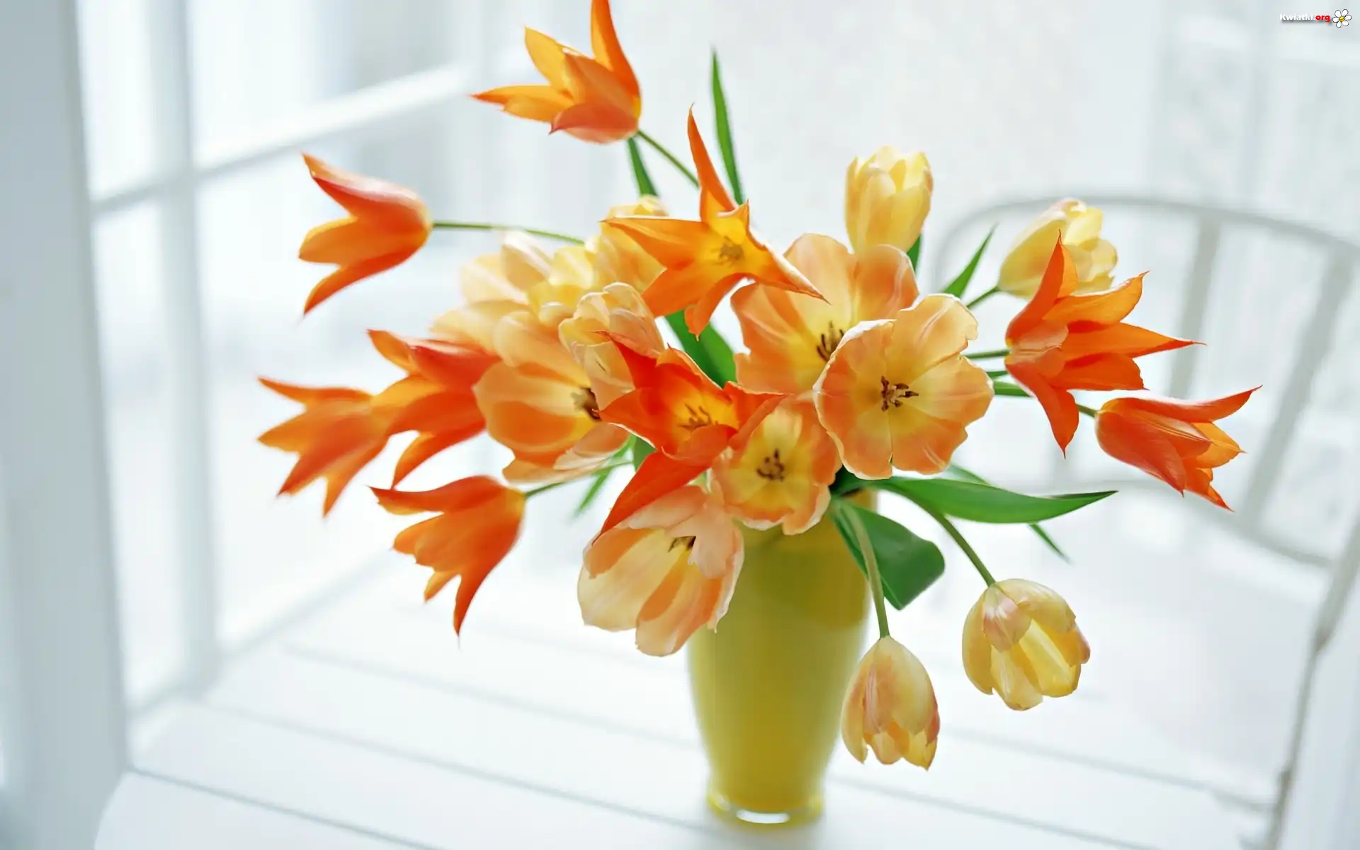 Kwiat Pomarańczowe, Tulipany, Wazon