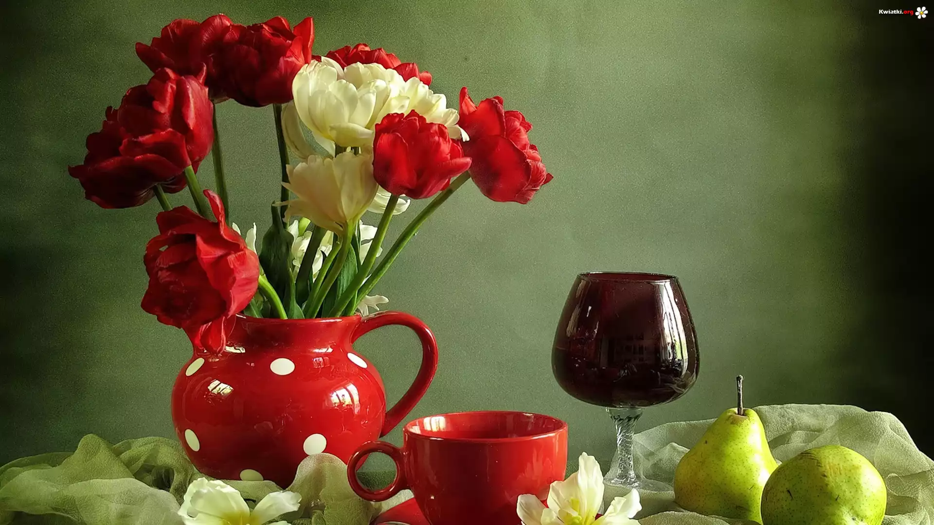 Tulipany, Kieliszek, Porcelana, Gruszki - Zdjęcia