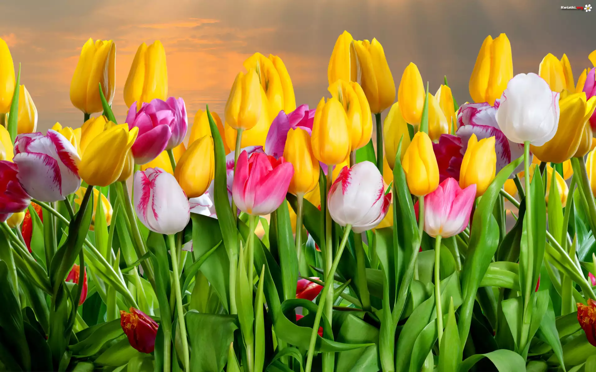 Tulipany, Niebo, Promienie, Słońca - Zdjęcia