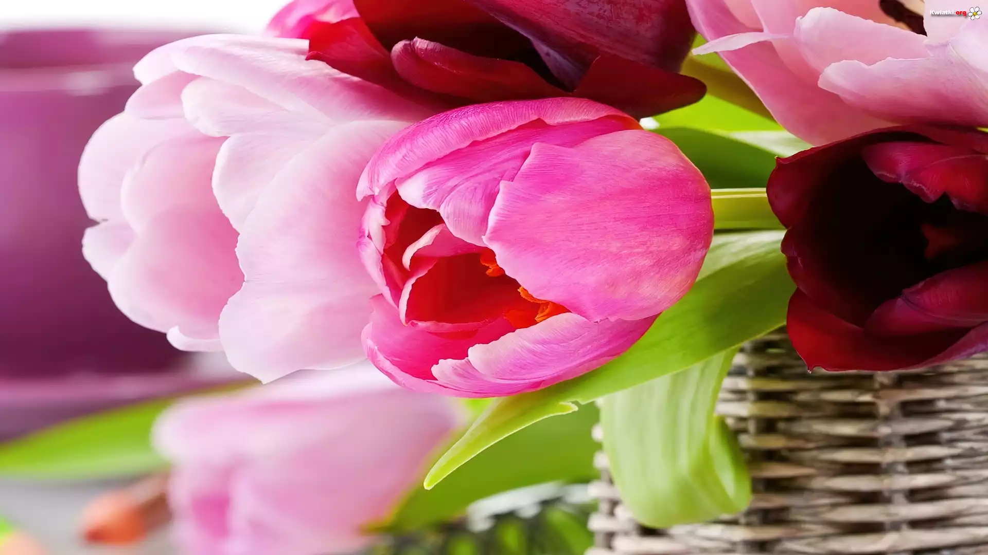 Kwiat Różowe, Tulipany, Koszyk