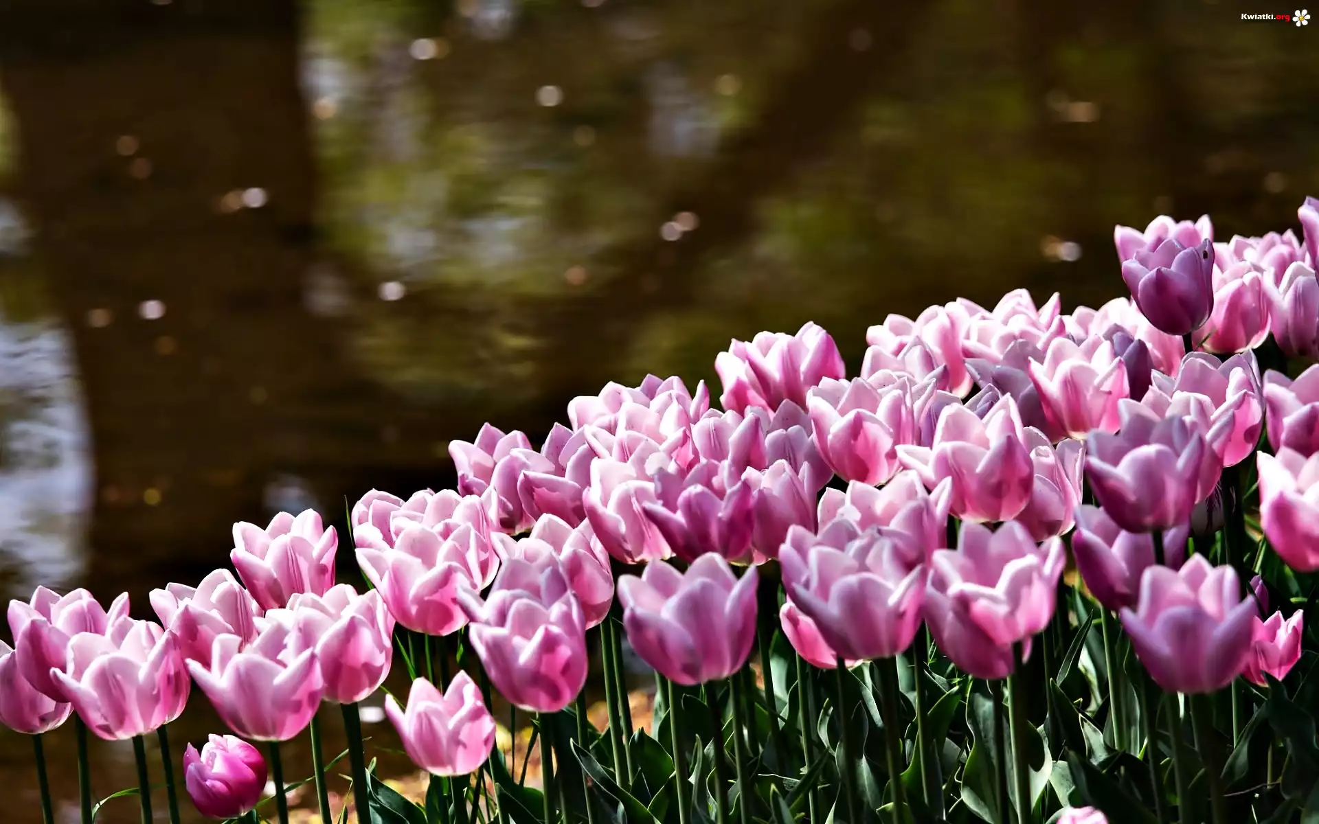 Różowe, Tulipany, Rzeka - Zdjęcia