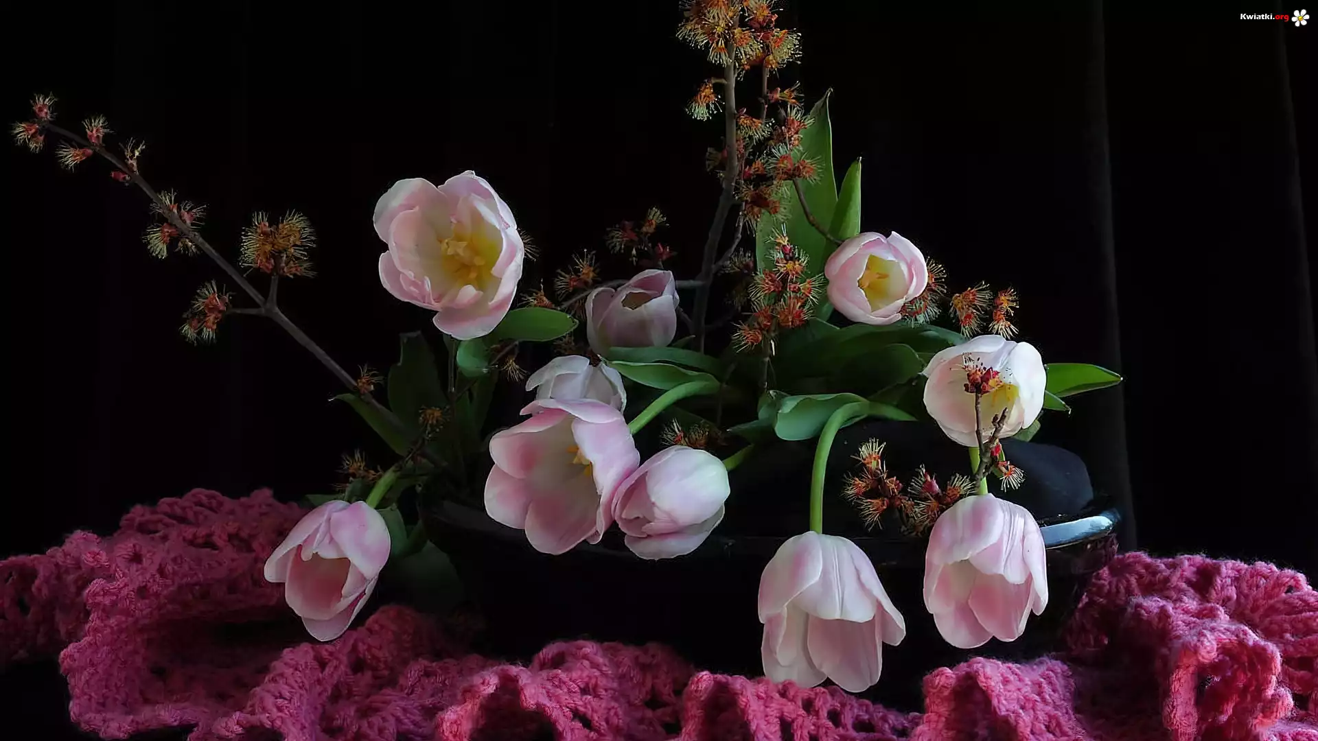 Różowe, Tulipany, Serwetka - Zdjęcia