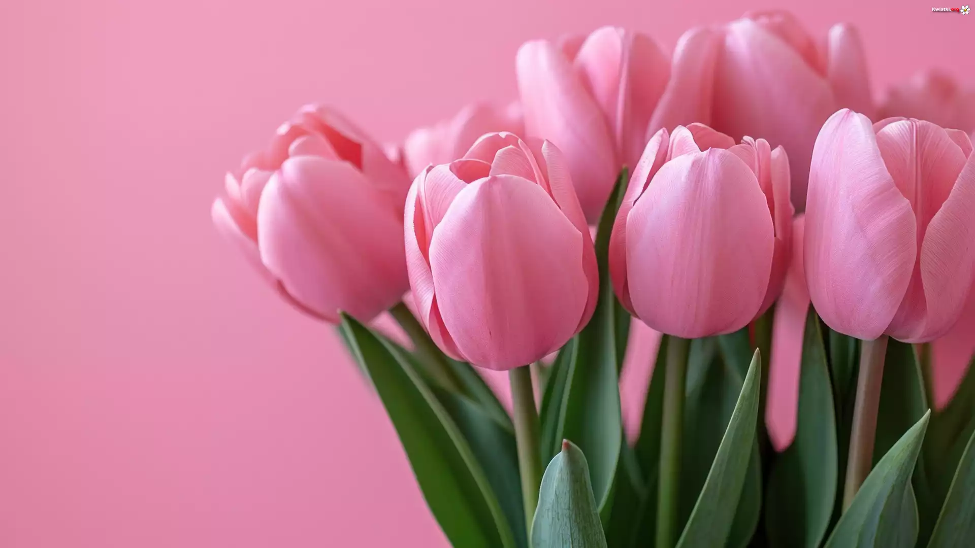 Różowe, Tulipany, Różowe tło, Zbliżenie - Zdjęcia