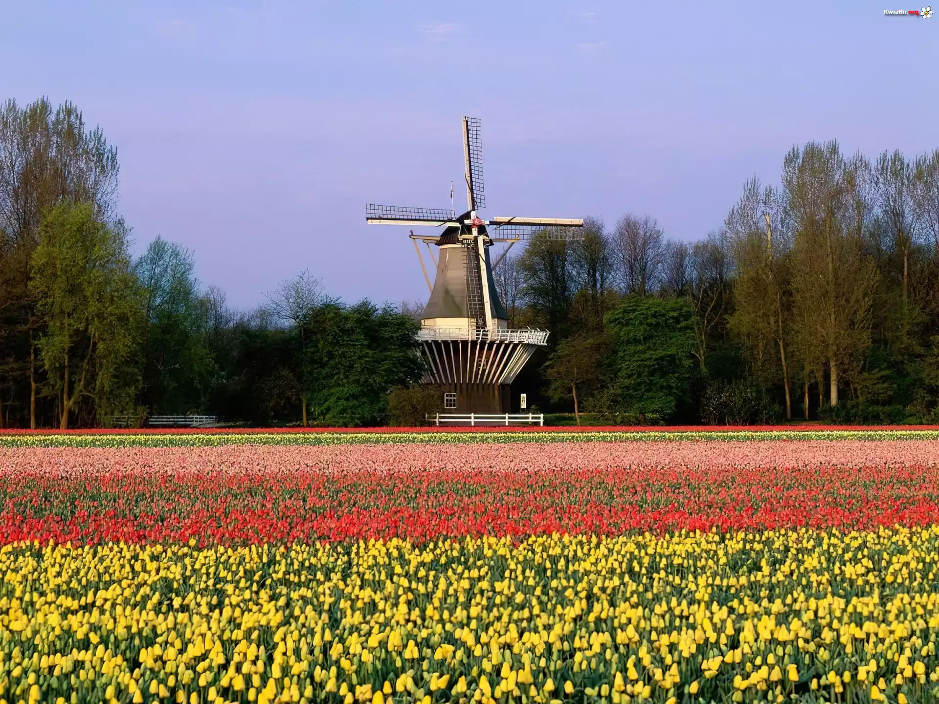 Wiatrak, Tulipany, Holandia - Zdjęcia