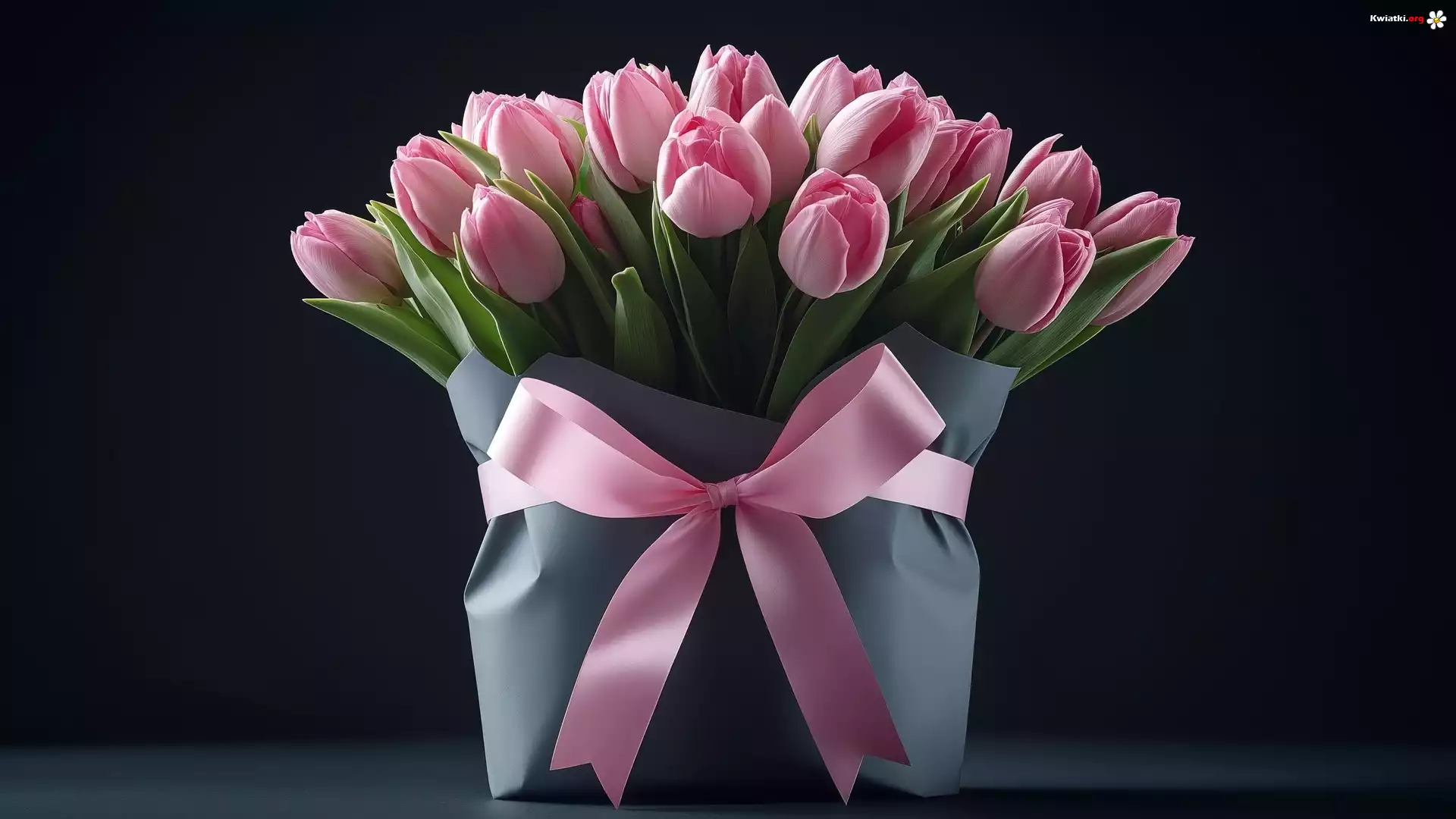 Tulipany, Różowa, Wstążka - Zdjęcia