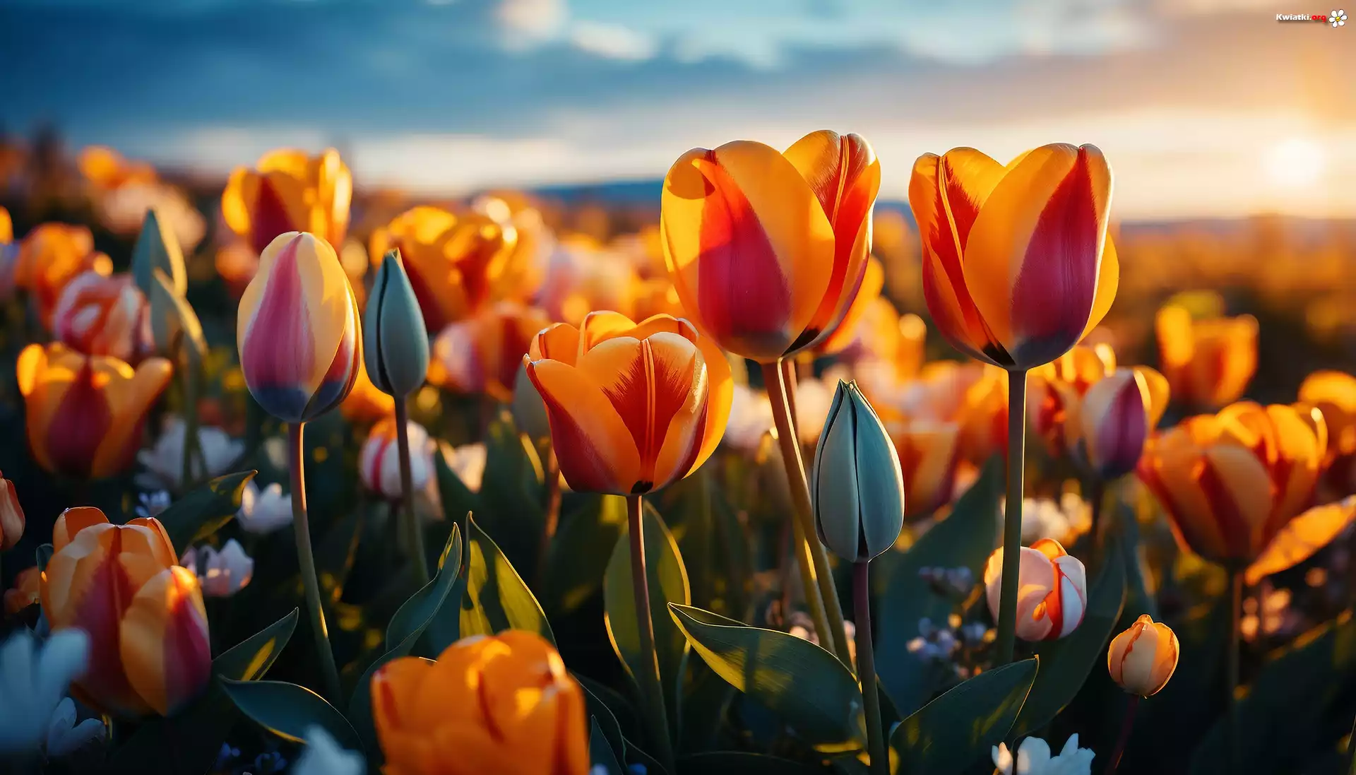 Kwiat Kwiaty, Tulipany, Zachód słońca, Grafika