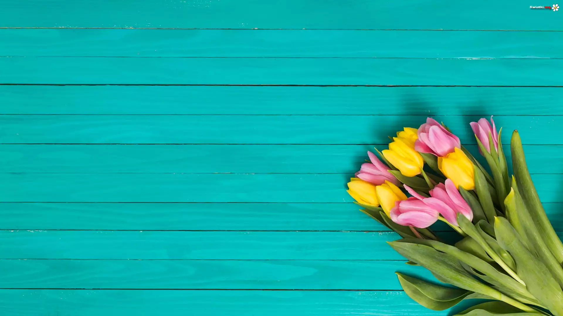 Żółte, Różowe, Tulipany, Turkusowe, Deski - Zdjęcia
