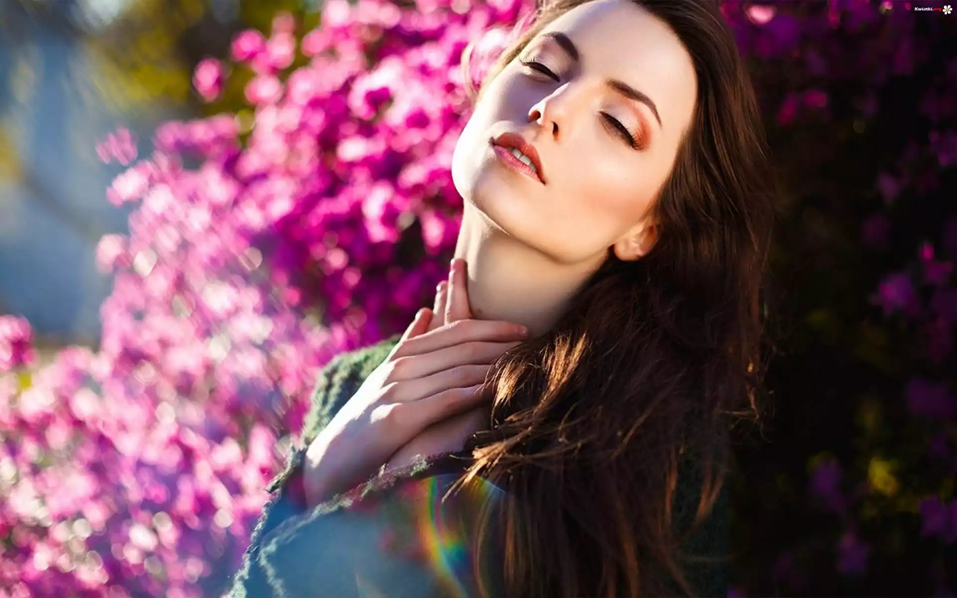 Kwiat Kobieta, Twarz, Dłonie, Długie, Włosy, Tło, Kwiaty