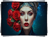 Kobieta, Twarz, Makijaż, Róże, Grafika - Zdjęcia