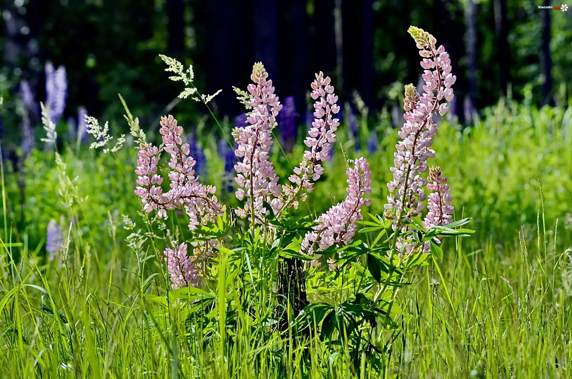 Kwiaty, Łubin, Trawa - Zdjęcia
