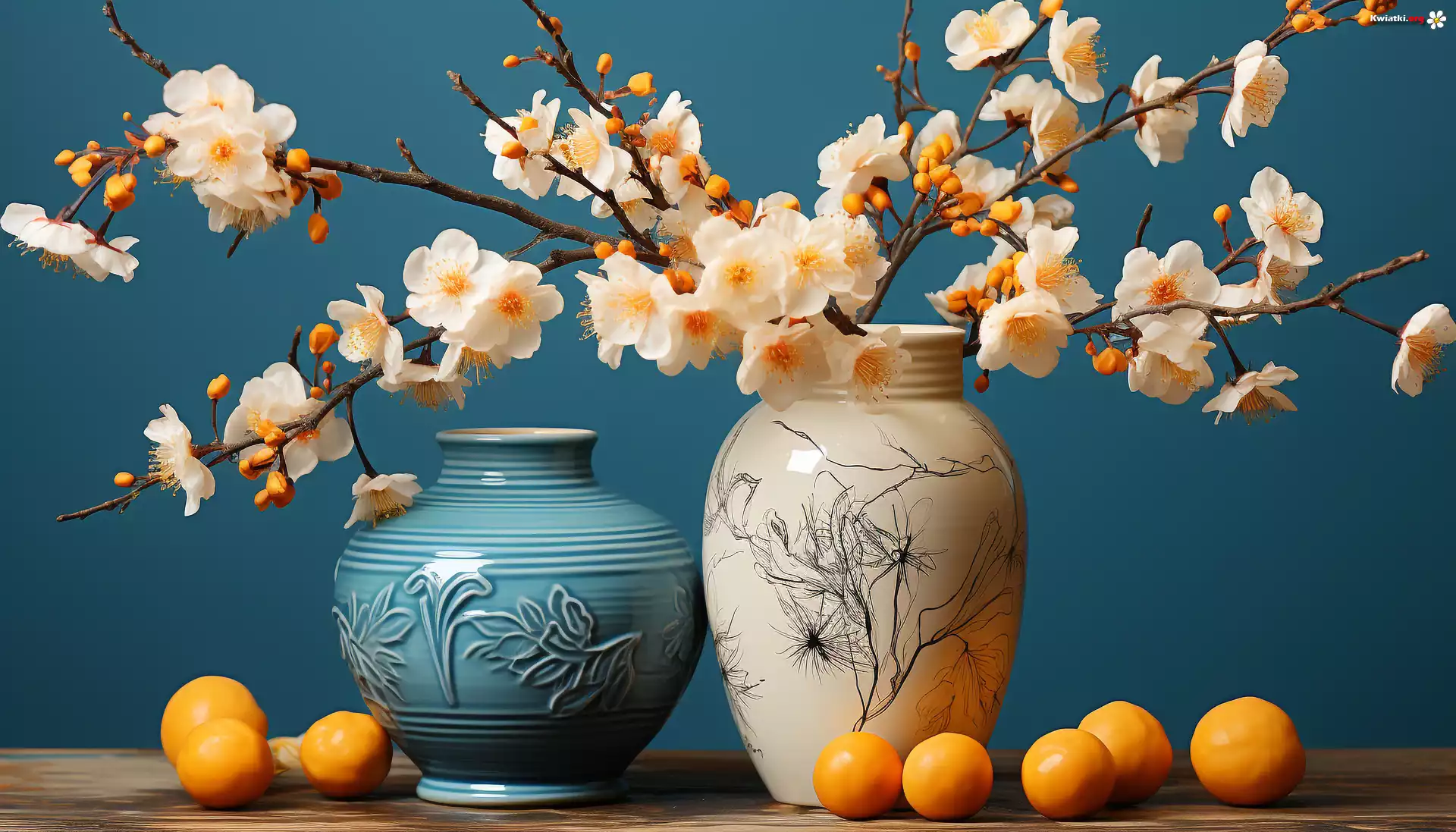Wazony, Dwa, Gałazki, Ukwiecone, Kompozycja Kwiat - Zdjęcia