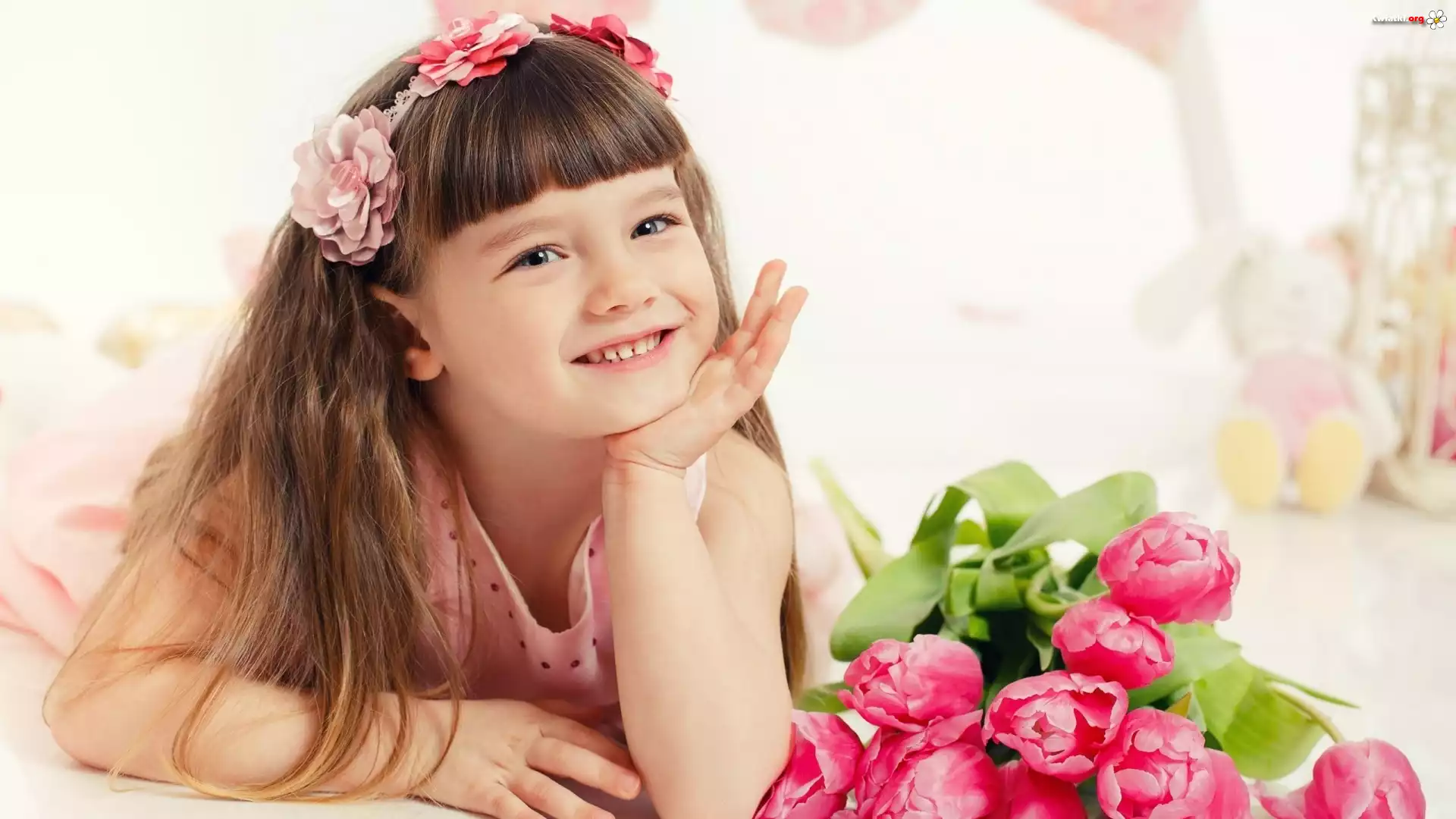 Kwiat Uśmiechnięta, Dziewczynka, Wianek, Tulipany