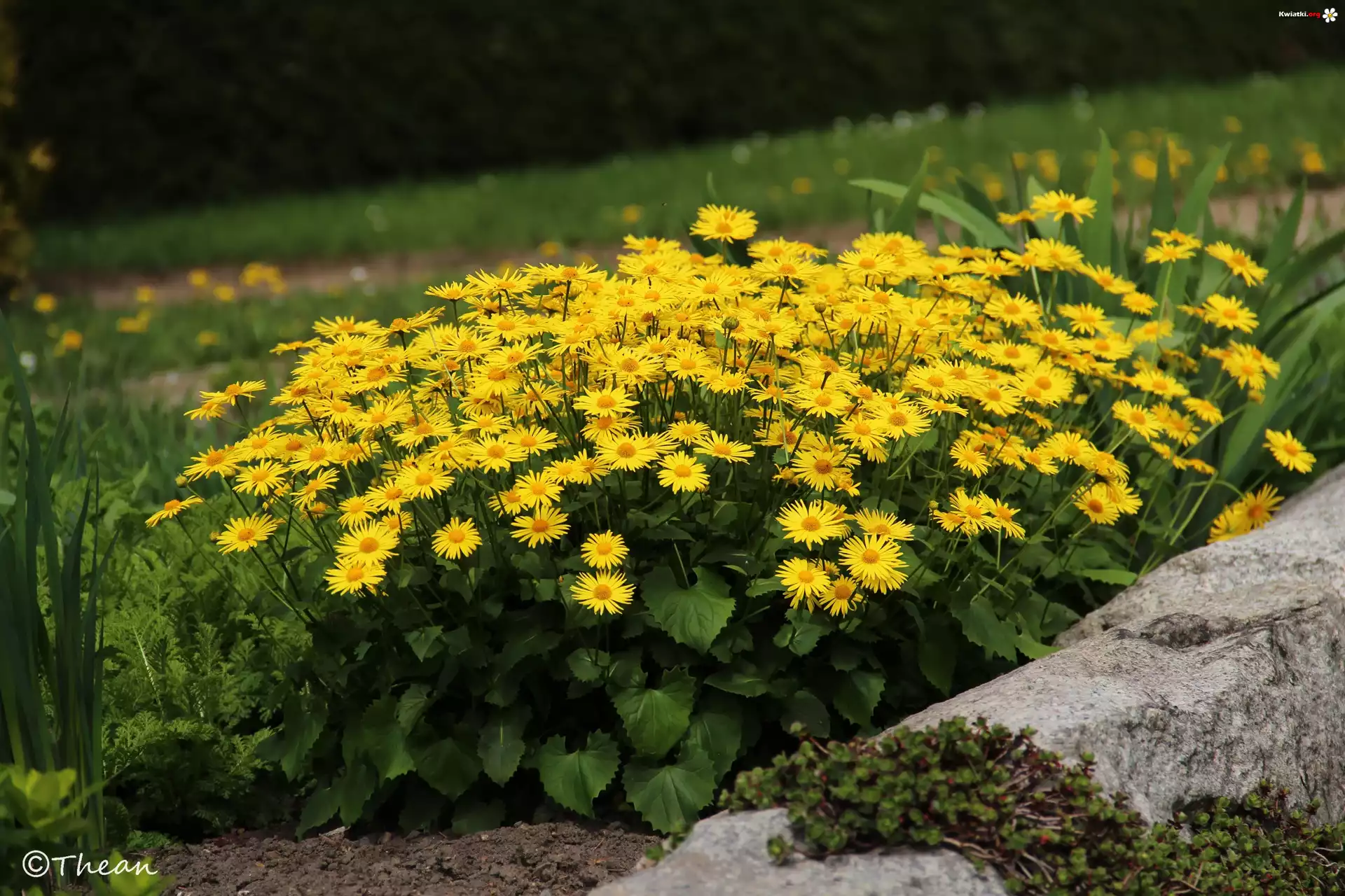 Żółte, Kwiaty, W, Ogrodzie - Zdjęcia