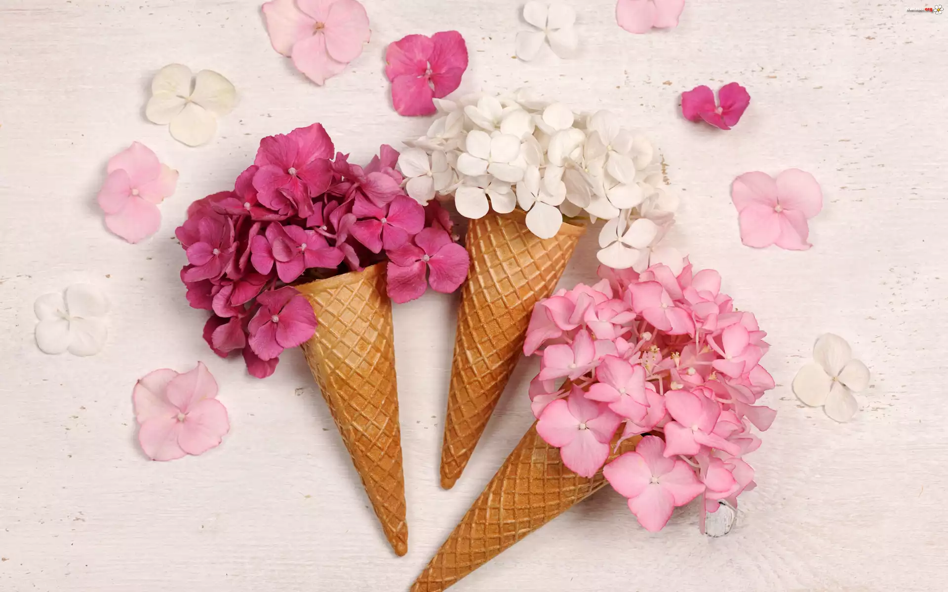 Wafelki, Rożki, Kwiaty, Hortensja - Zdjęcia