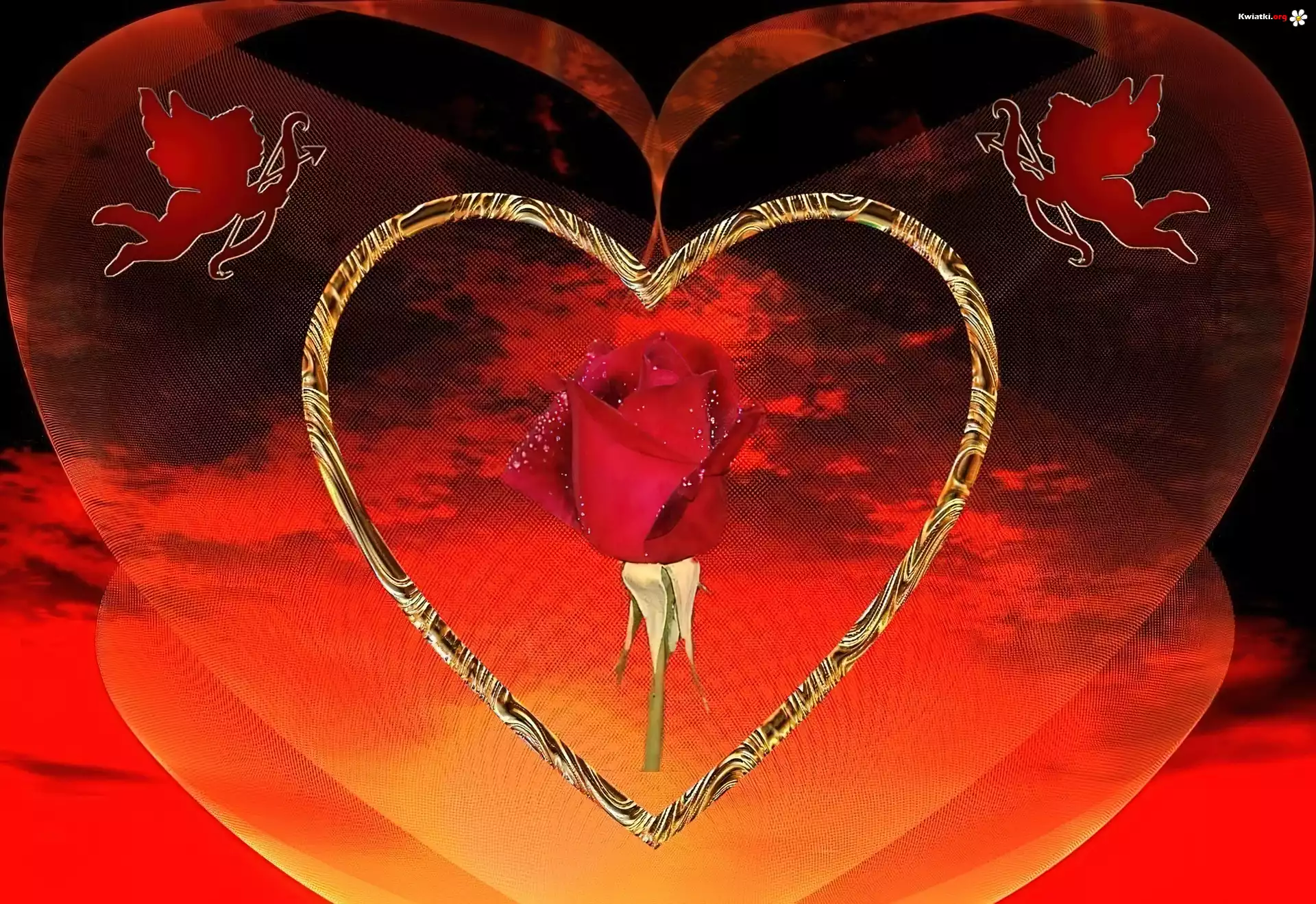 Walentynki, Amorki, Czerwona, Róża - Zdjęcia