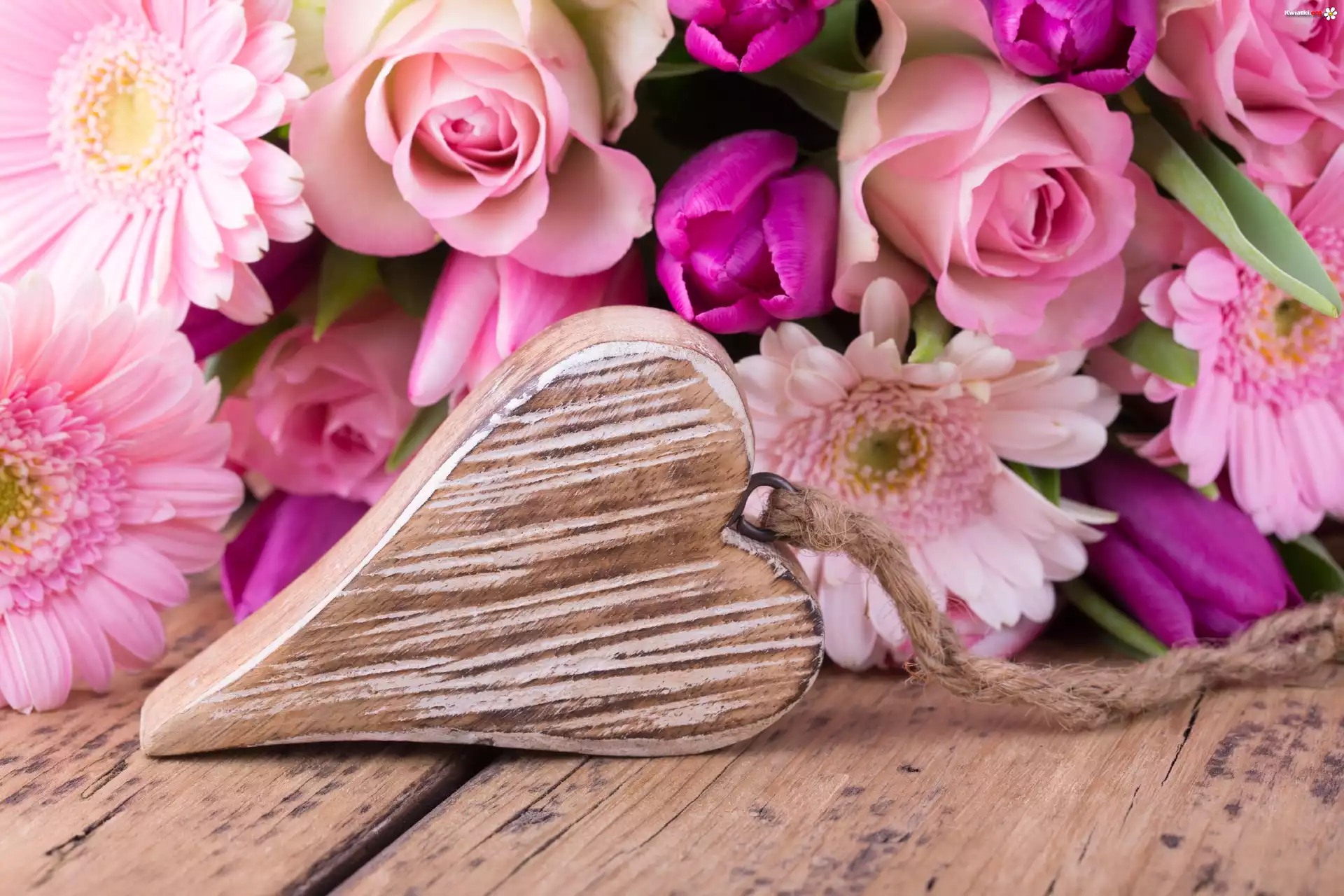 Kwiat Walentynki, Serce, Miłość, Róże, Gerbery, Tulipany