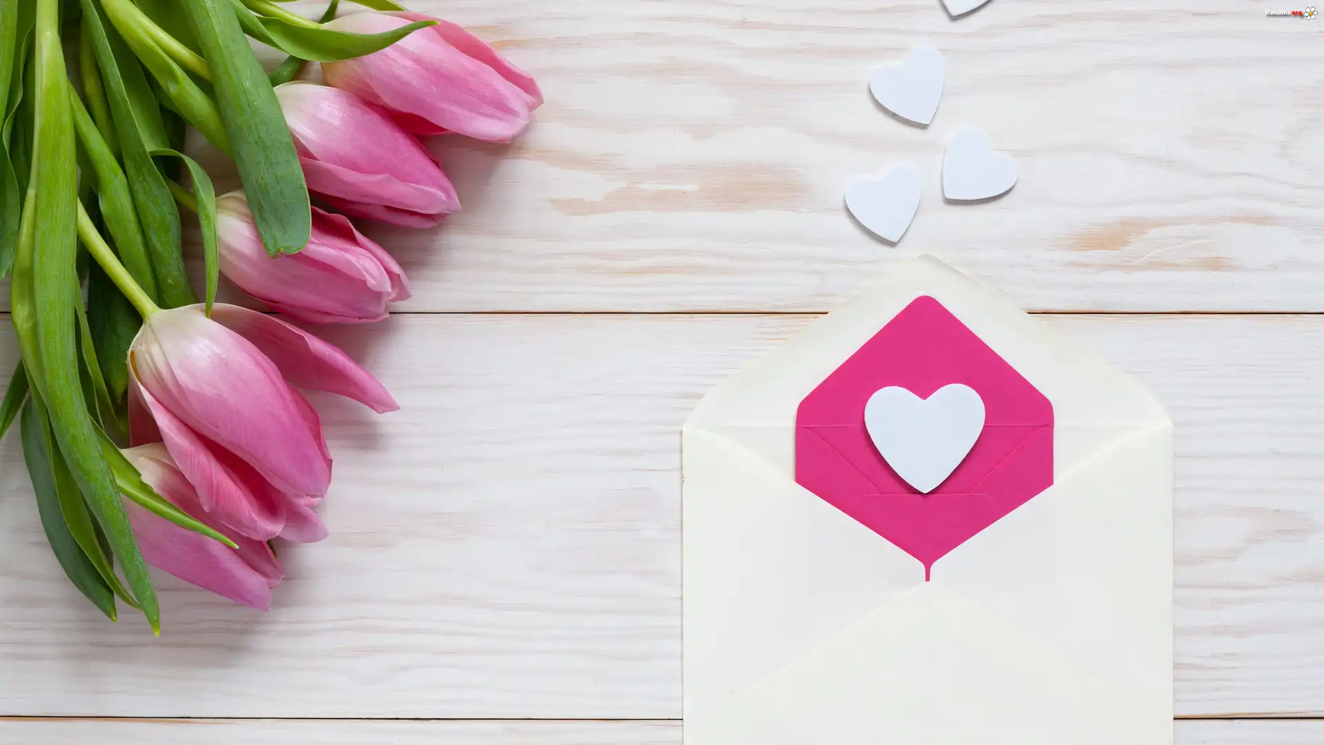 Kwiat Walentynki, Tulipany, Bukiet, Koperta, Serduszka