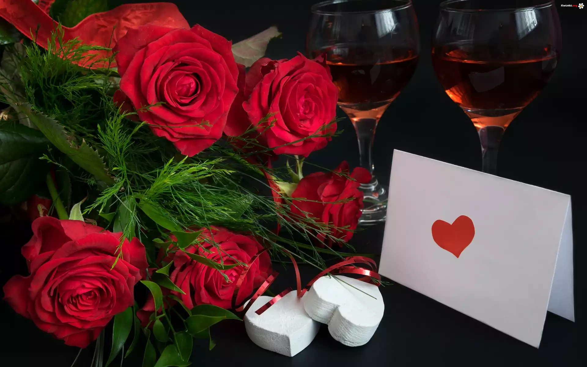 Kwiat Walentynki, Miłosne, Róże, Kwiaty, Wino
